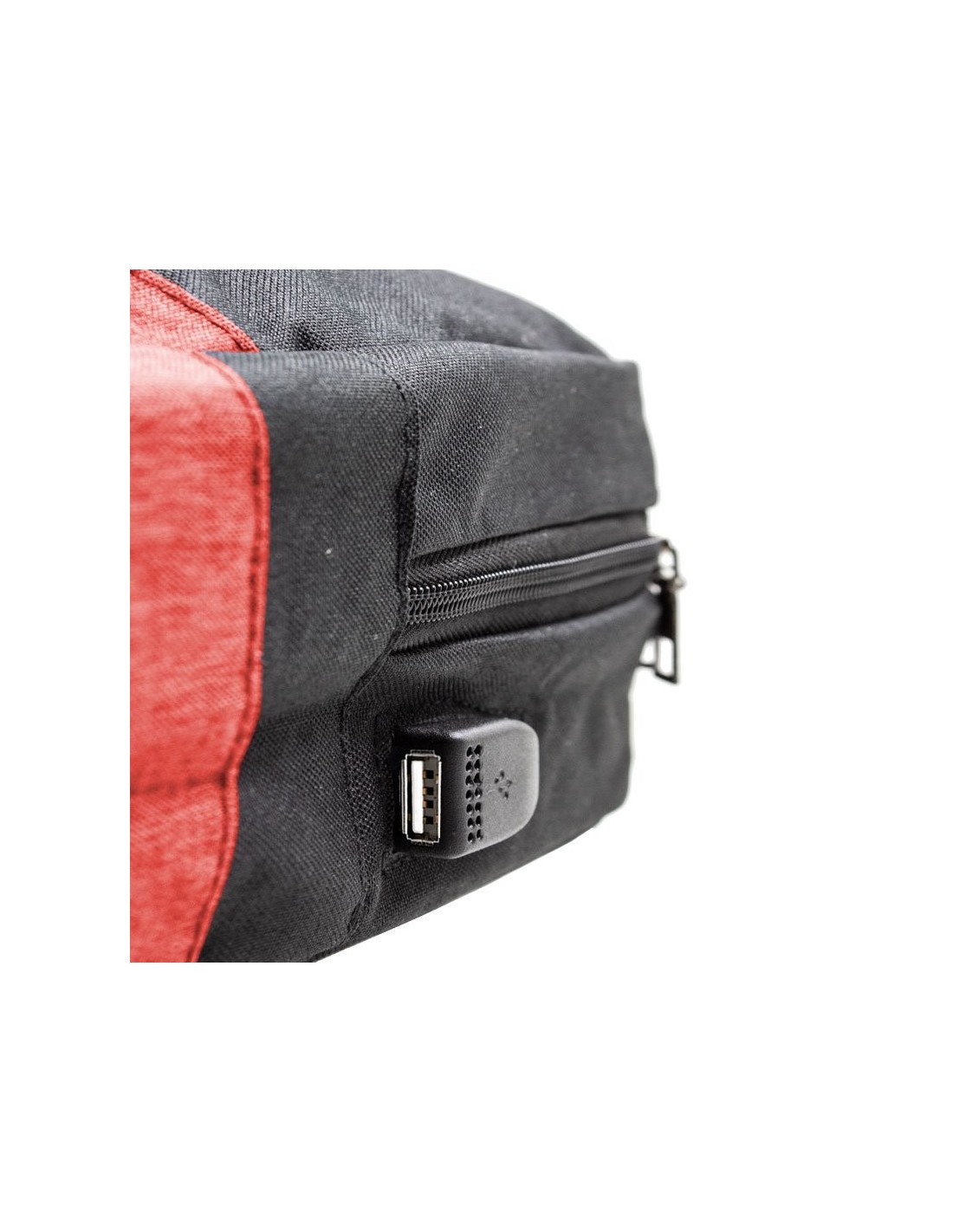 Incorpora bolsillo con cremallera central, bolsillos y compartimentos interiores, y puerto USB con cable comunicado a un bolsillo pequeño interior, ideal para meter tu powerbank / Batería externa (no incluída).