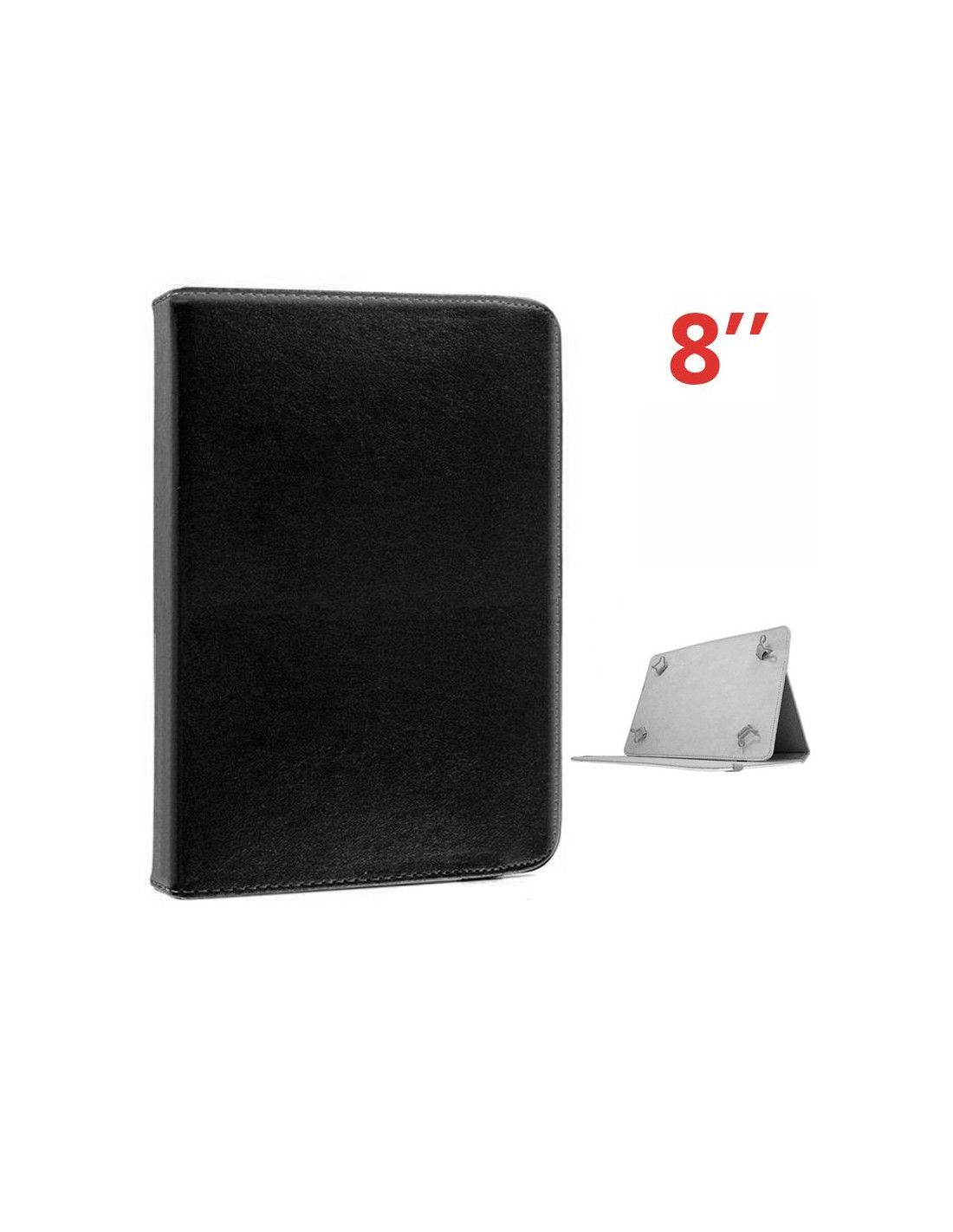 Funda con soporte universal para tabletas de 8 pulgadas en color negro.