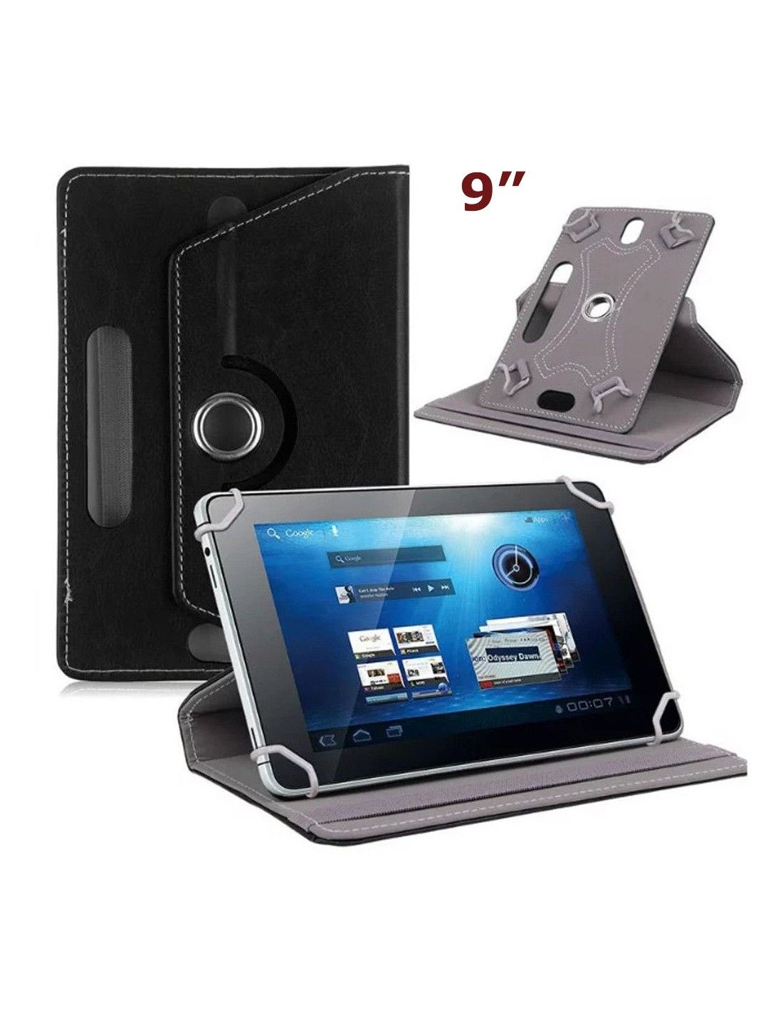 Funda soporte giratorio universal tablets 9'' pulgadas polipiel negra