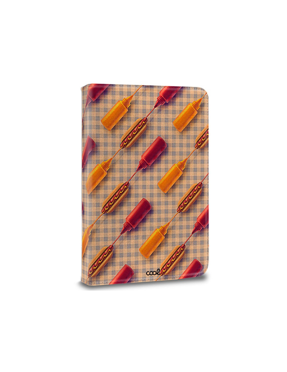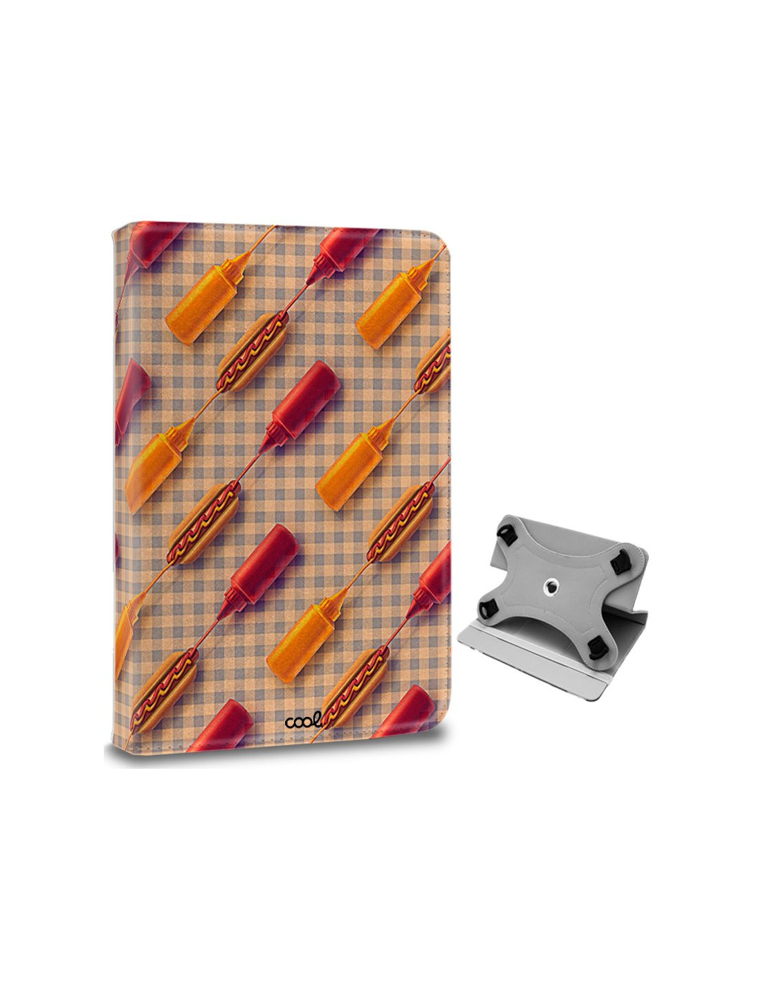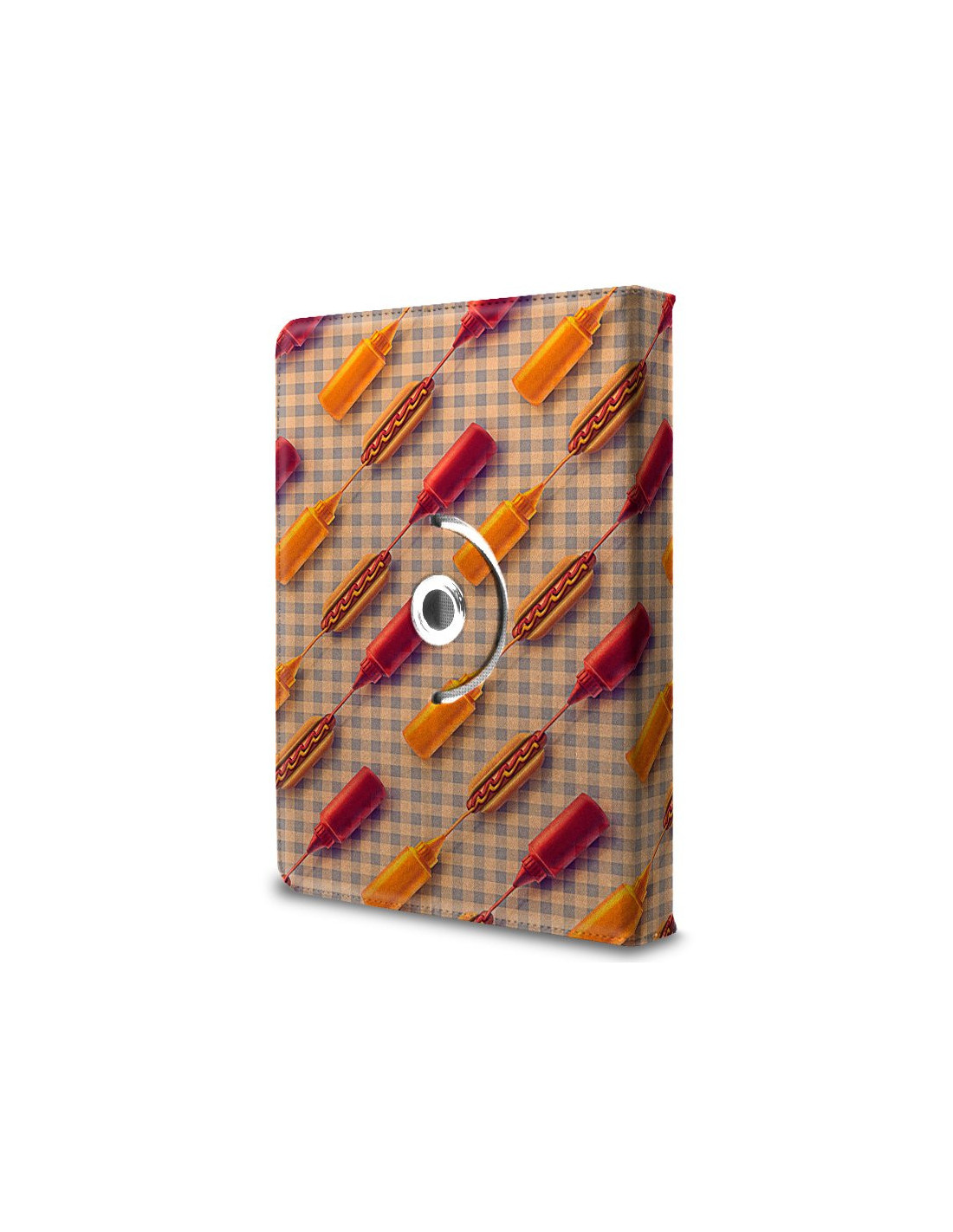 Funda polipiel soporte giratorio universal tabletas 9,7 - 11 pulgadas diseño Hot Dogs (Cuadrada)