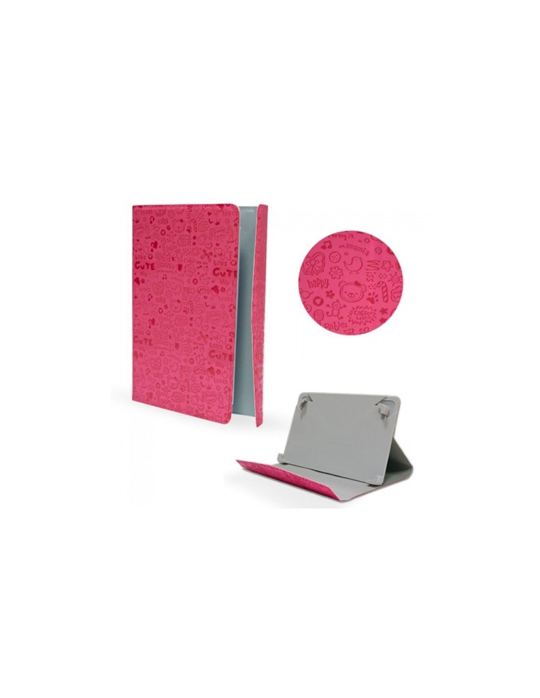 Funda con soporte universal para iPad 2 / 3 / 4 y tabletas de aproximadamente 9,7" pulgadas en color rosa.