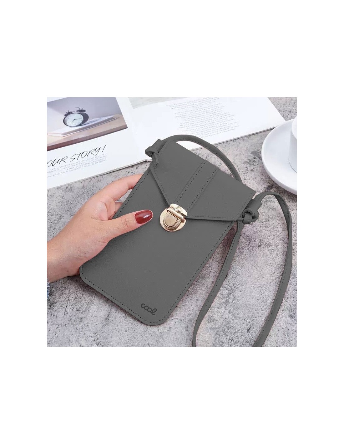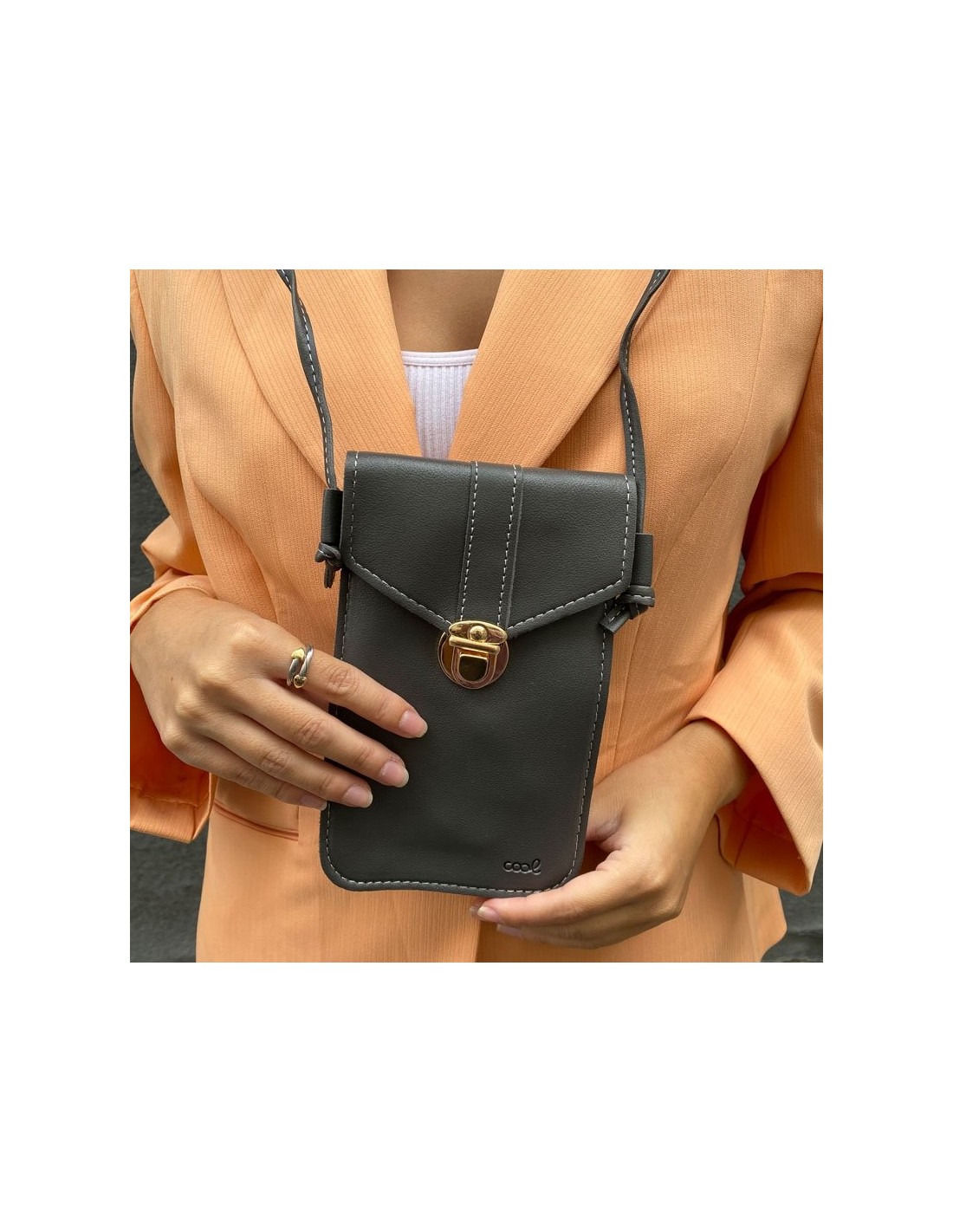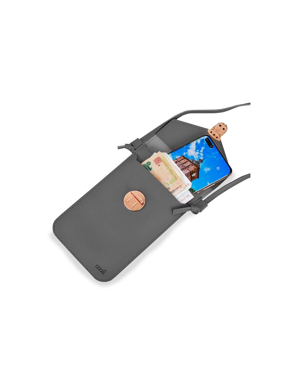 Perfecta para guardar tu smartphone, tarjetas, billetes, monedas, carnet de identidad... Cuenta con un cierre metálico y dos bolsillos interiores.