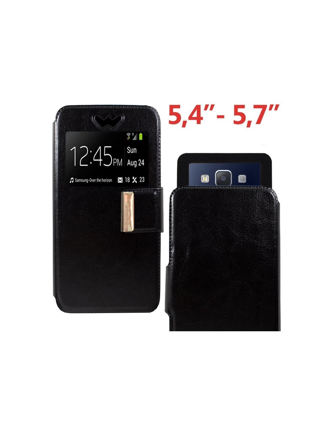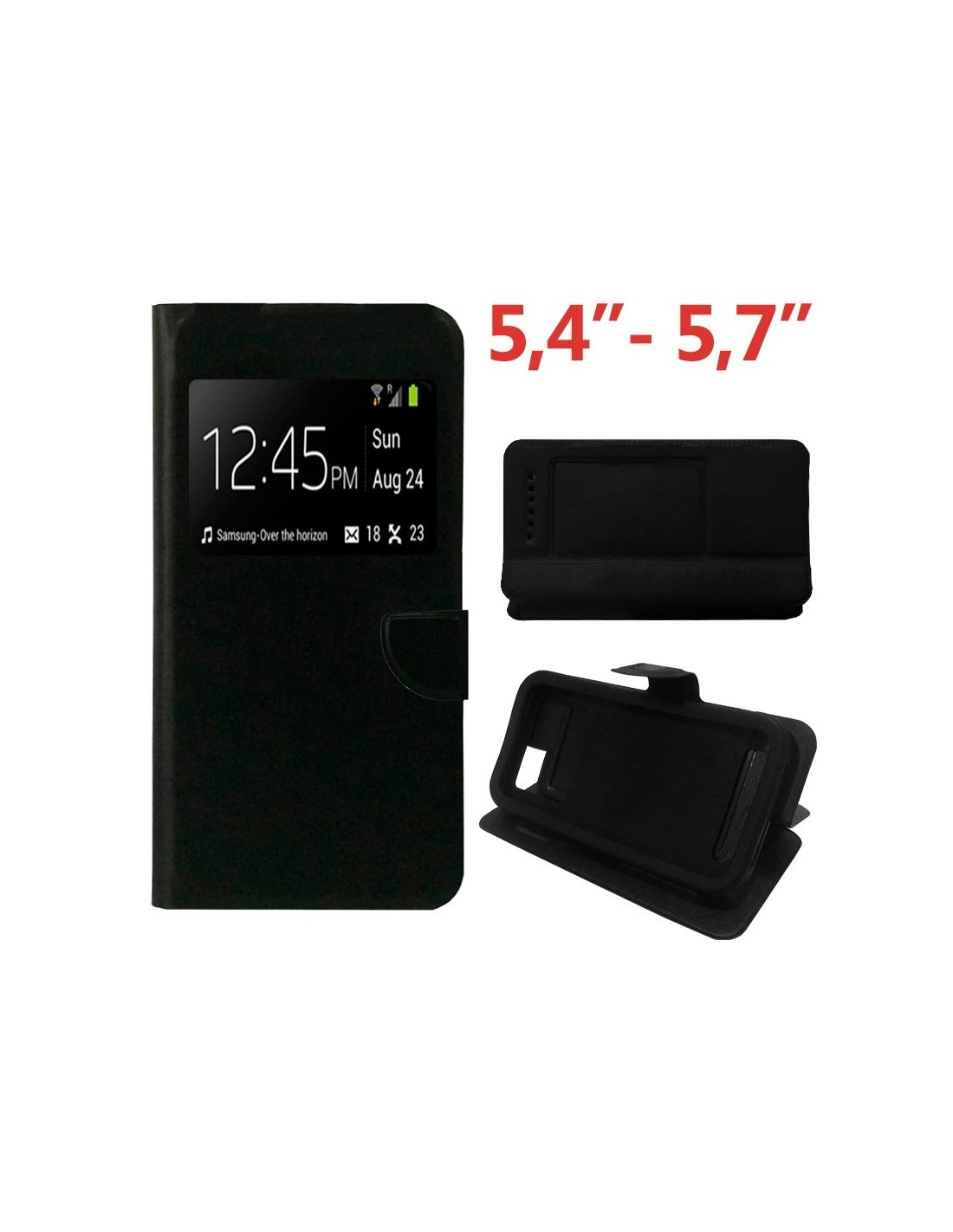 Funda libro con soporte interior universal de silicona adaptable, válida para smartphones de todas las marcas.