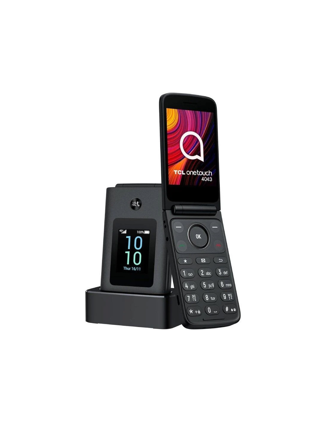 El diseño con tapa del TCL 4043D permiten tener el teclado y la pantalla siempre protegidos de posibles golpes. Además, con la filosofía de simplificar las cosas, este TCL 4043D se carga en una cómoda base que viene incluida, y de esta manera se ahorran complicaciones por los cables y cargadores.