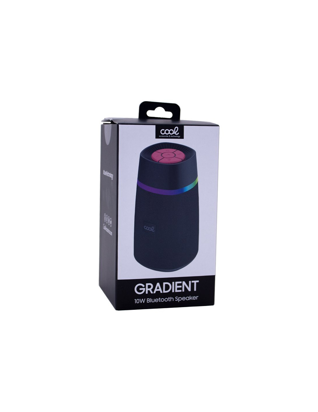 Altavoz COOL Gradient 10W. Compatible con todos los dispositivos Bluetooth. Altavoz de alta fidelidad, sonido claro y nítido. El altavoz tiene un rango de distancia de hasta 10 metros. Válido para reproducir tu música favorita conectándolo con dispositivos externos como tablet, ordenador, televisión, teléfono móvil...
