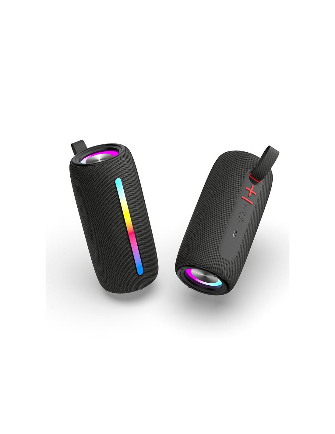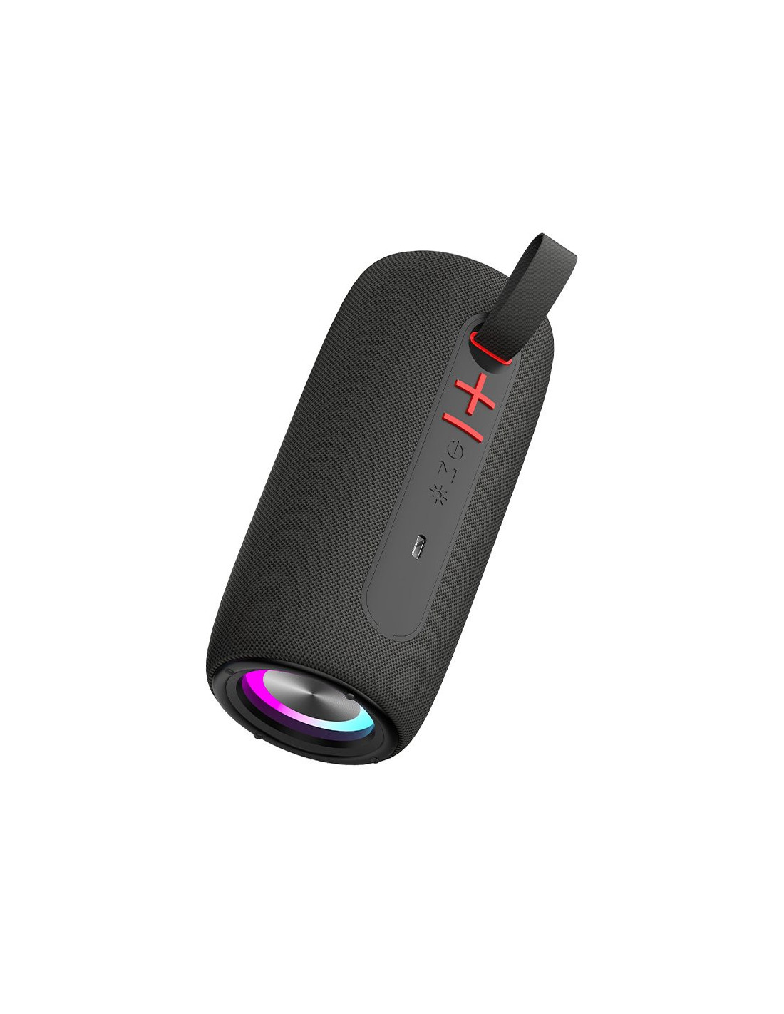 Agradable tacto tipo tela. Incluye tira colgadora negra, para llevarlo cómodamente o para colgarlo en algún sitio y escuchar el sonido envolvente del altavoz. Código logístico: GLRYSTR