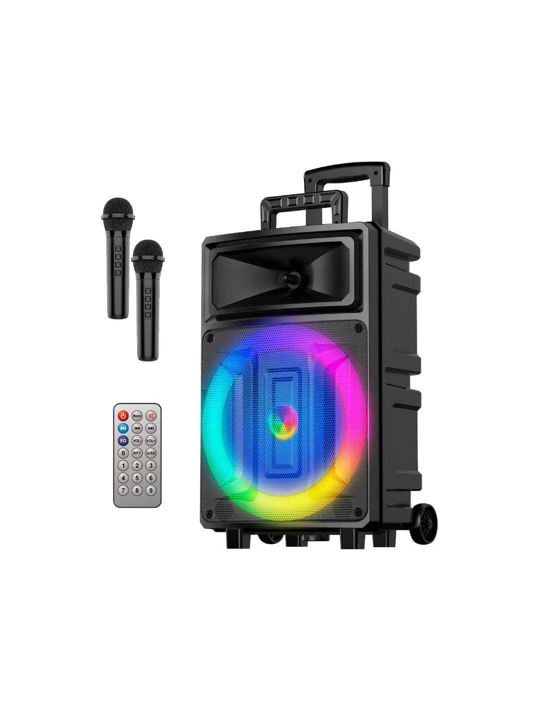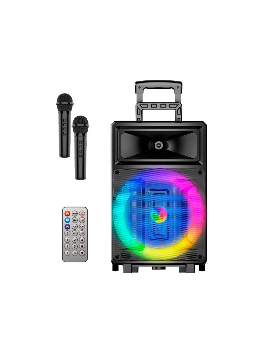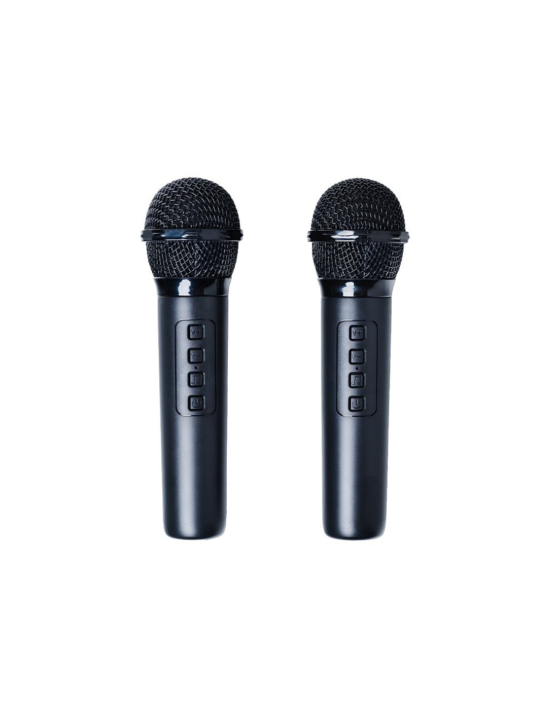 Entrada universal auxiliar de micrófono para función karaoke. (Con 2 micrófonos inalámbricos incluídos).