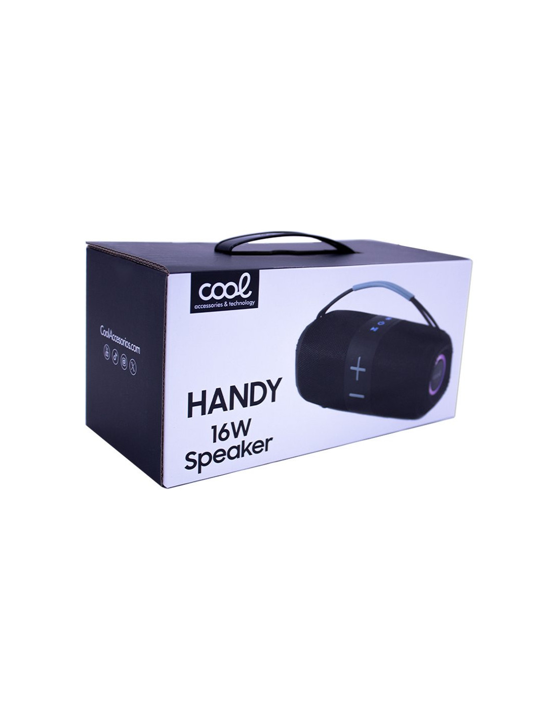 Altavoz COOL Handy 16W. Compatible con todos los dispositivos Bluetooth. Altavoz de alta fidelidad, sonido claro y nítido. El altavoz tiene un rango de distancia de hasta 10 metros. Con el cable auxiliar, puede conectar dispositivos externos como tablet, ordenador, televisión, móvil... además de inalámbricamente a través de Bluetooth.
