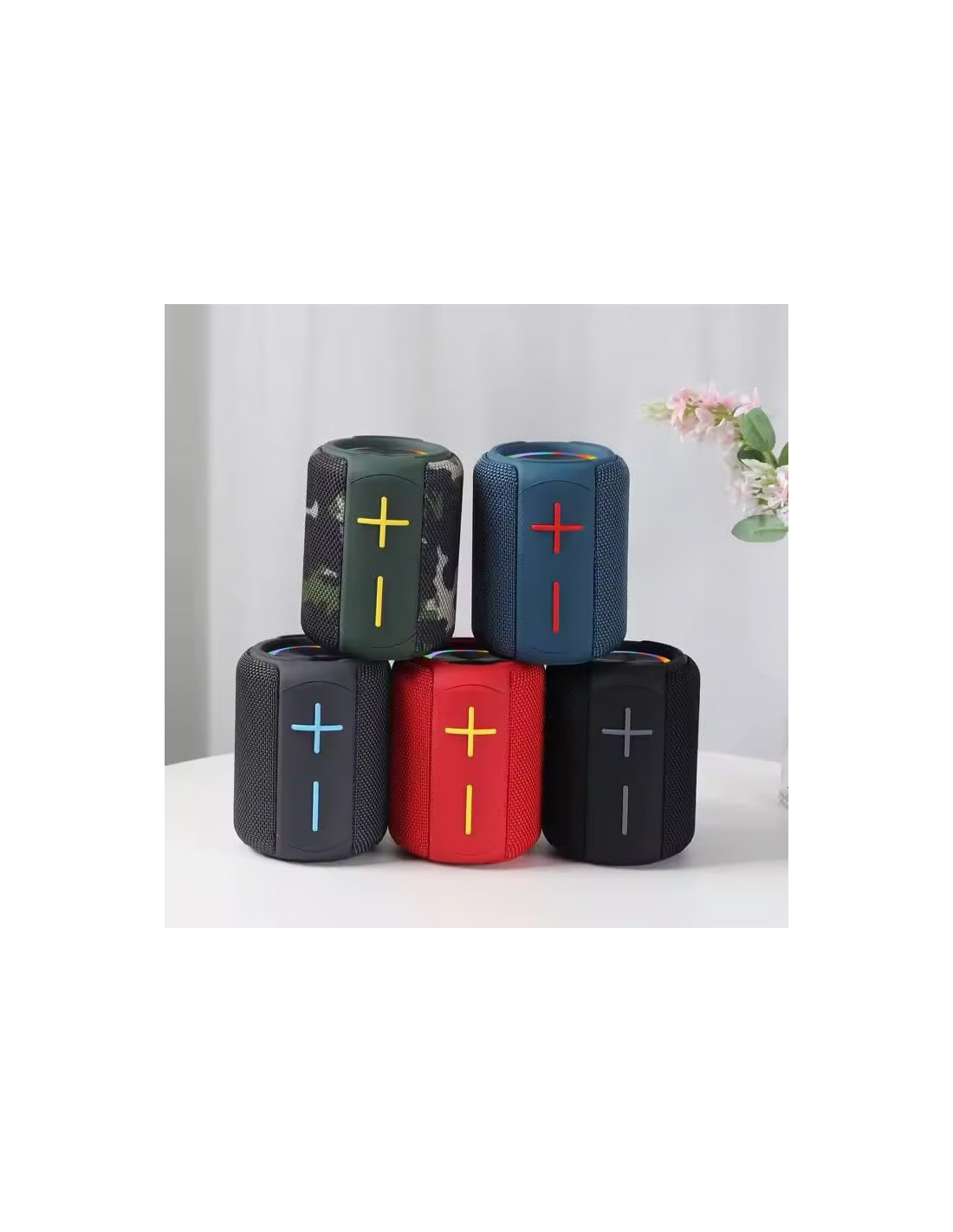 Altavoz portátil inalámbrico Bluetooth con luz RGB, extra de bajos, micrófono, USB tipo C y con tecnología TWS que permite enlazar dos altavoces similares y mejorar aun más la experiencia de sonido. También puede sintonizar la radio FM y escuchar su emisora favorita.