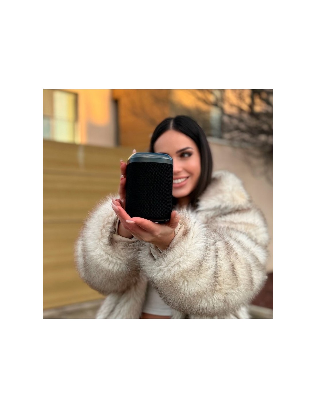 Altavoz compacto bluetooth "COOL Base" de 5 vatios de potencia. Su diseño de tamaño reducido y su asa colgadora, permiten llevarlo a todos sitios con total comodidad.