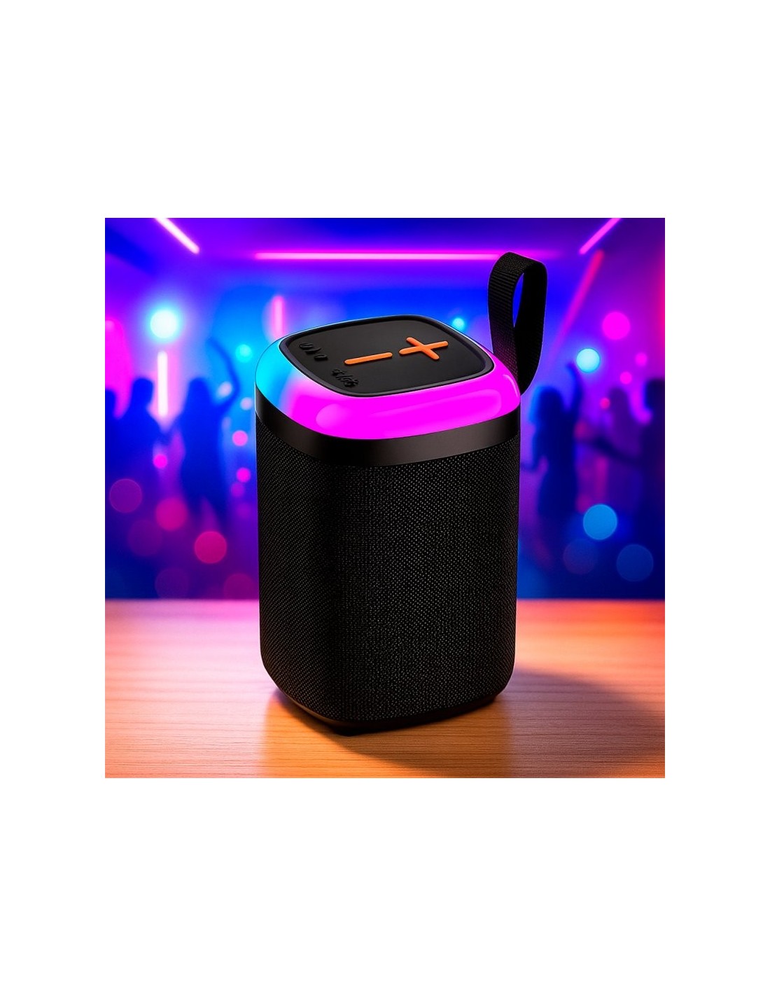 Iluminación LED RGB incorporada, mediante una espectacular banda circular que rodea el altavoz.