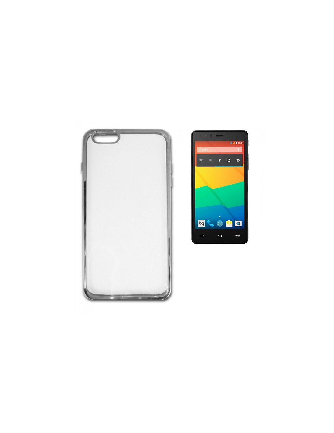 Carcasa TPU transparente BQ Aquaris E5 HD / E5 4G / E5s borde metalizado plata