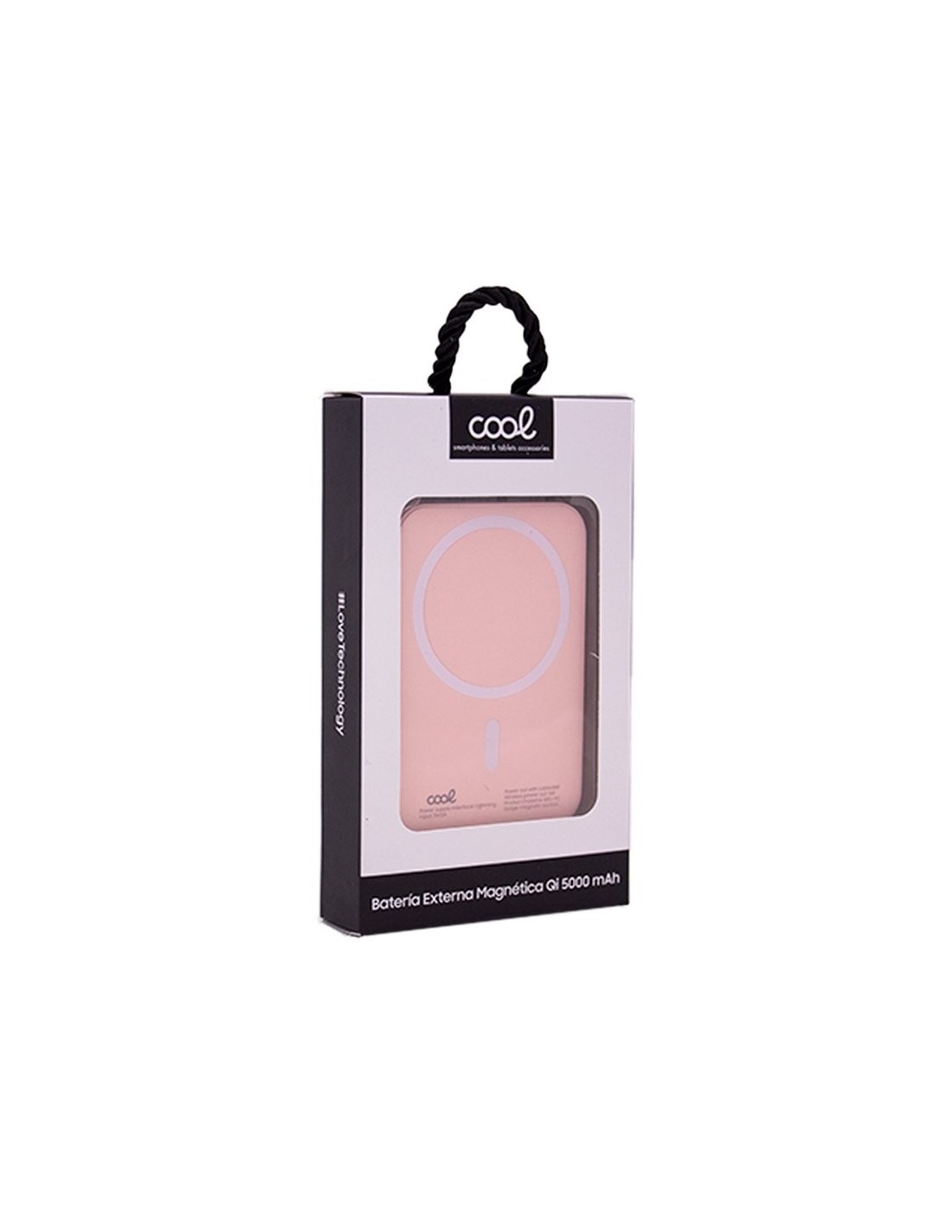 Batería universal portátil recargable de 5000 mAh ideal para cargar tu smartphone, con carga inalámbrica Qi.