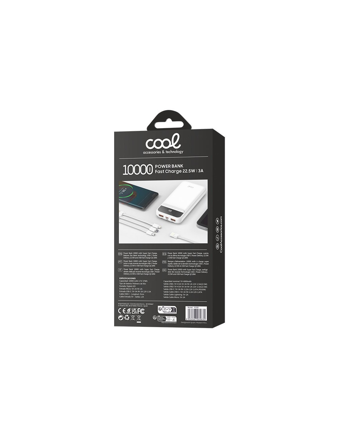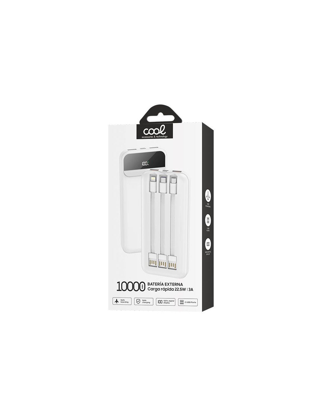 Batería Externa 10.000 mAh COOL + 3 cables integrados 22.5W