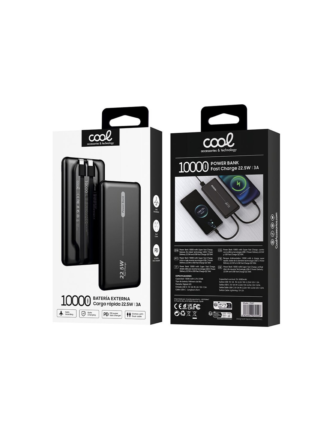 Batería Externa 10.000 mAh COOL + 2 cables integrados PD 22.5W