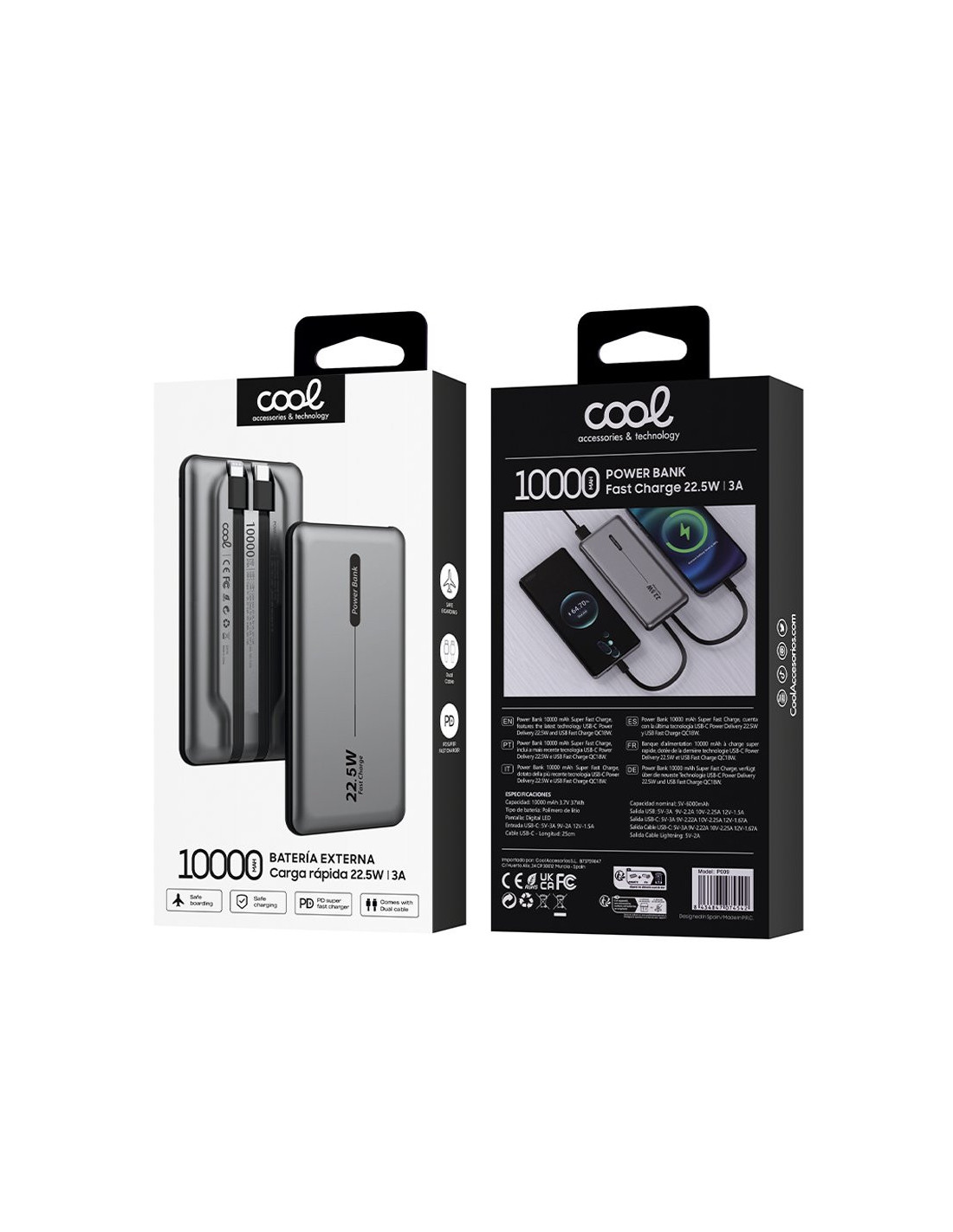 Batería Externa 10.000 mAh COOL + 2 cables integrados PD 22.5W