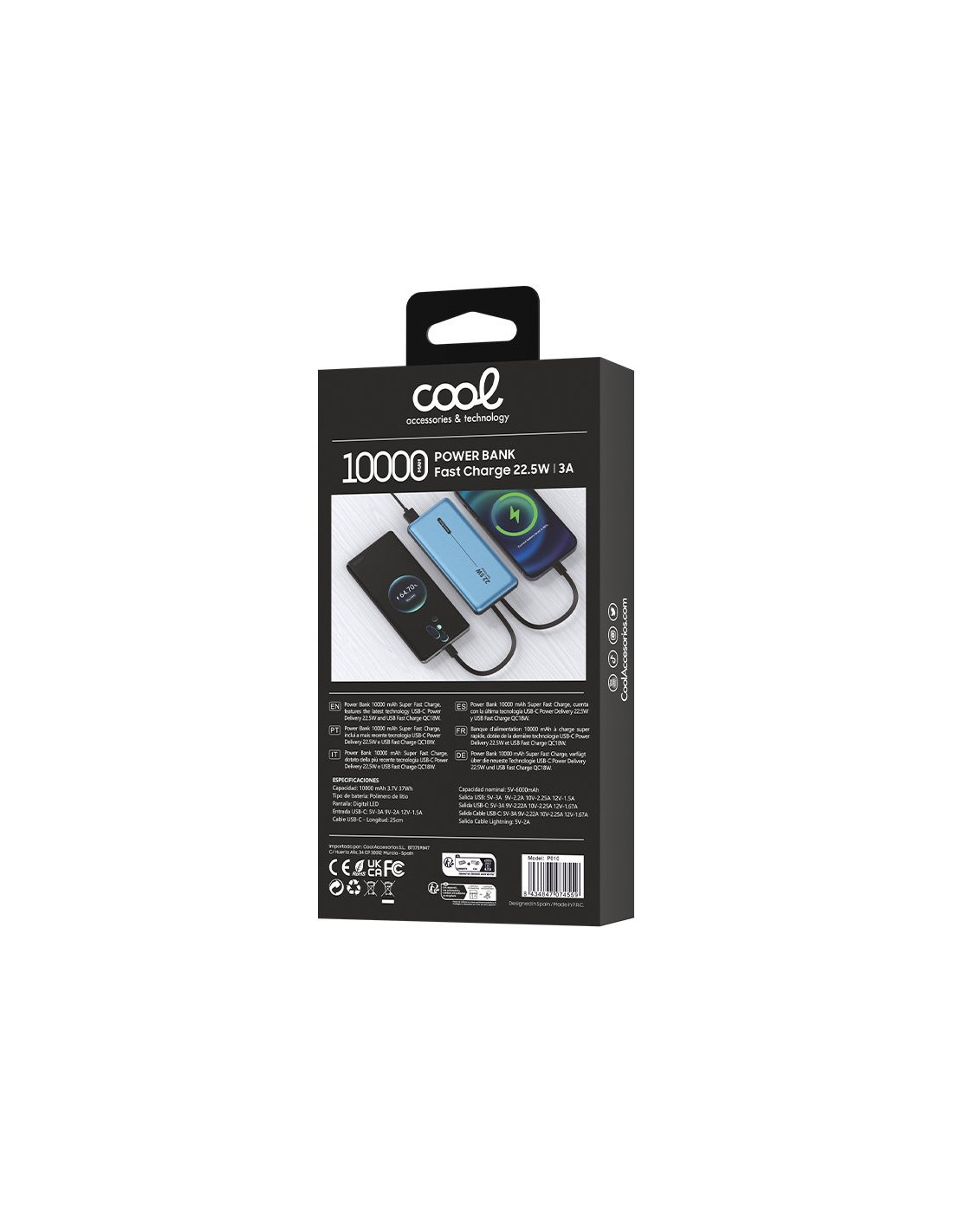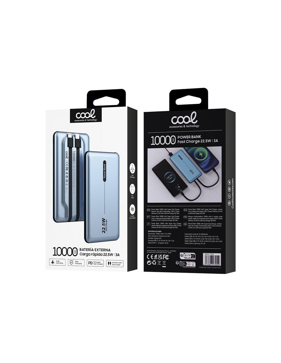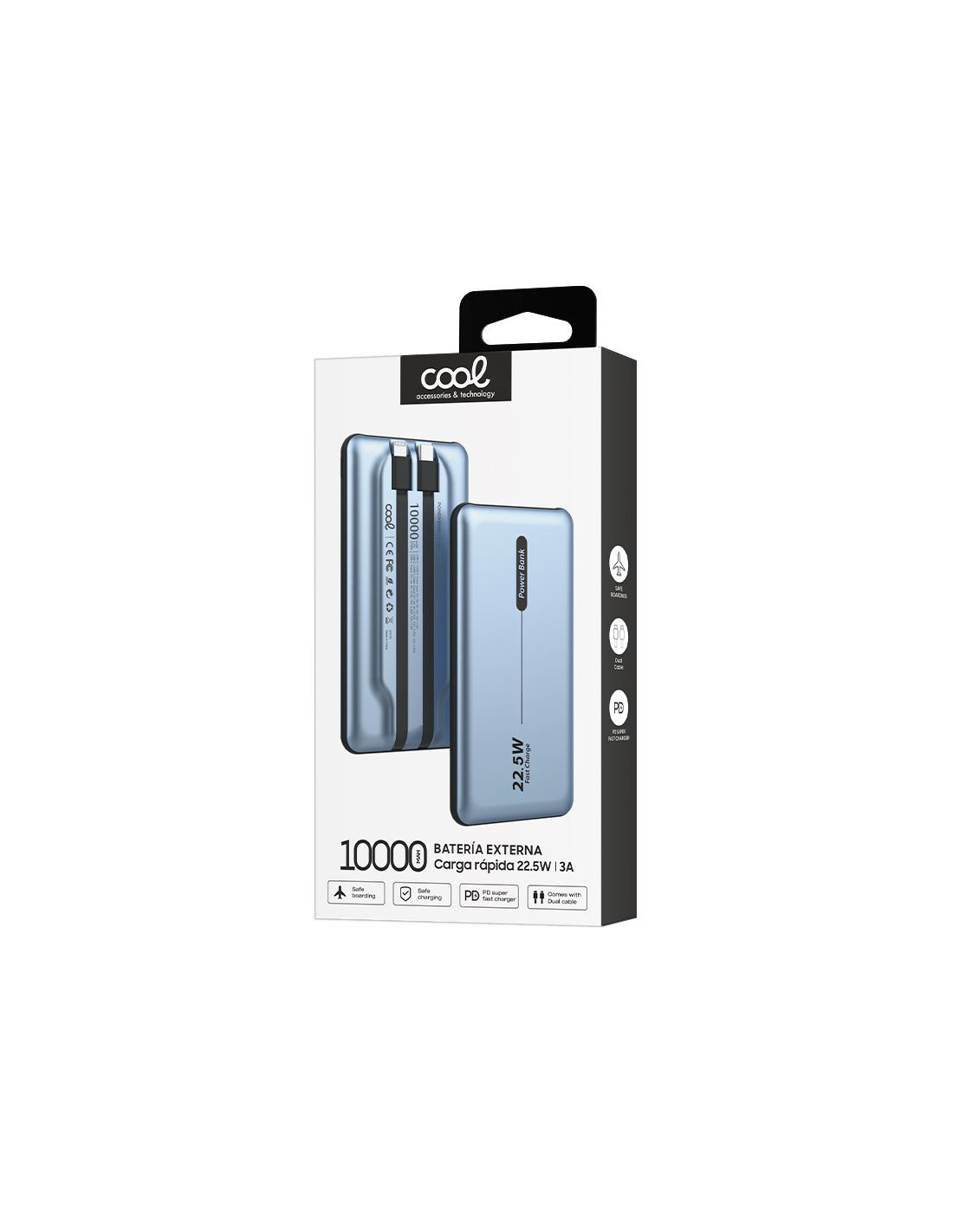 Batería Externa 10.000 mAh COOL + 2 cables integrados PD 22.5W
