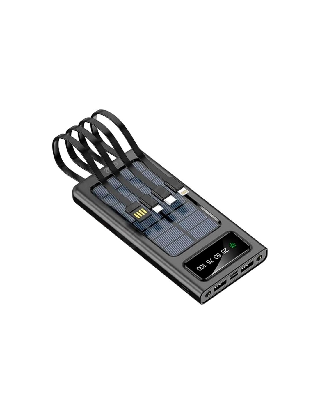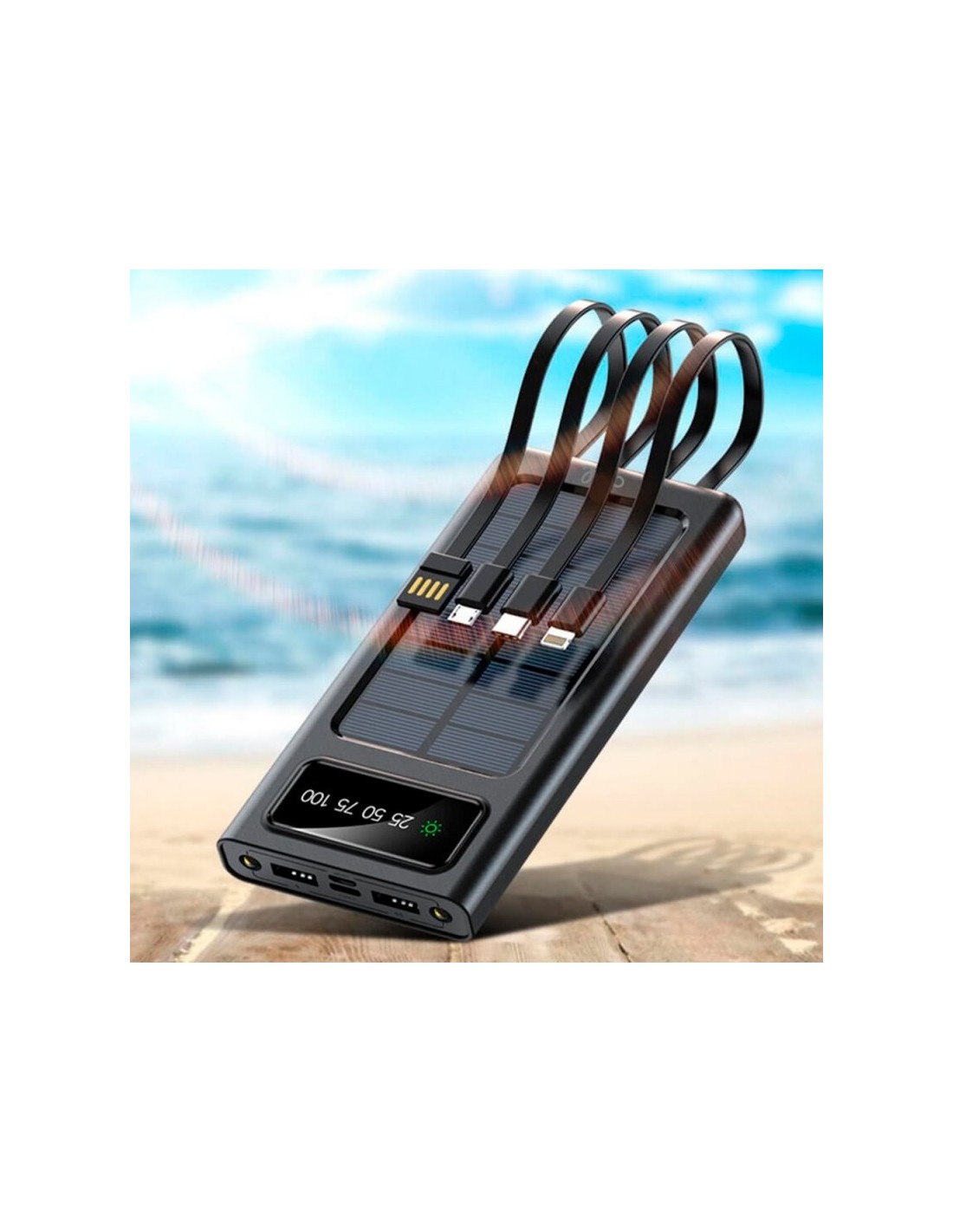 Batería universal portátil recargable de 10.000 mAh ideal para cargar tu smartphone, con carga extra a través de panel solar.