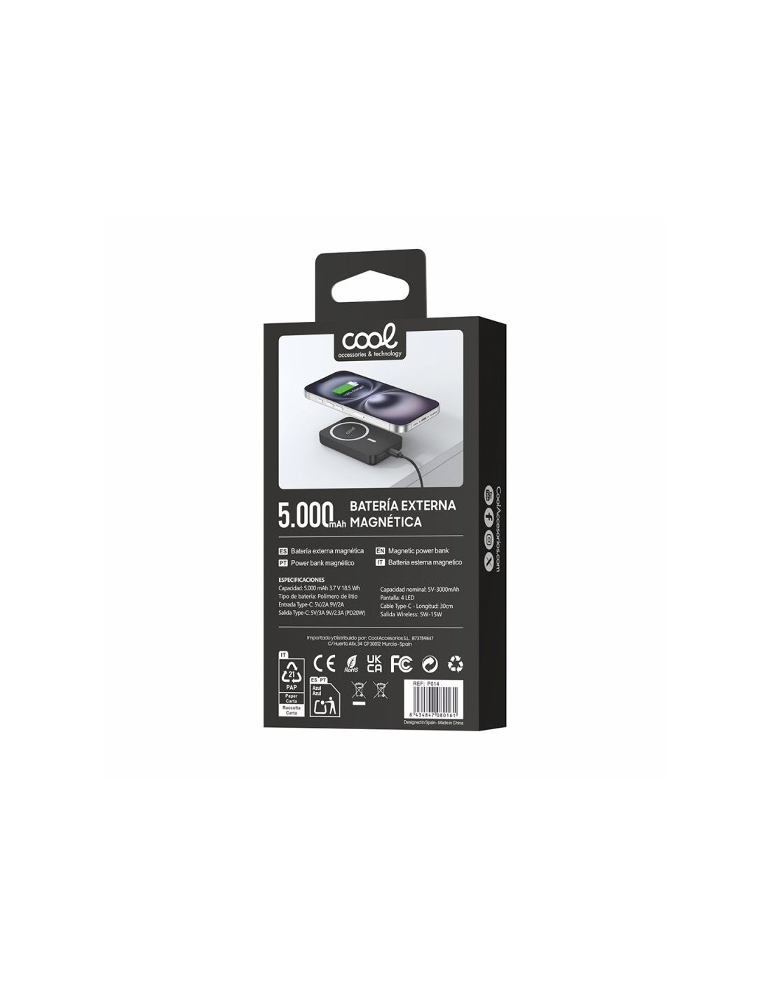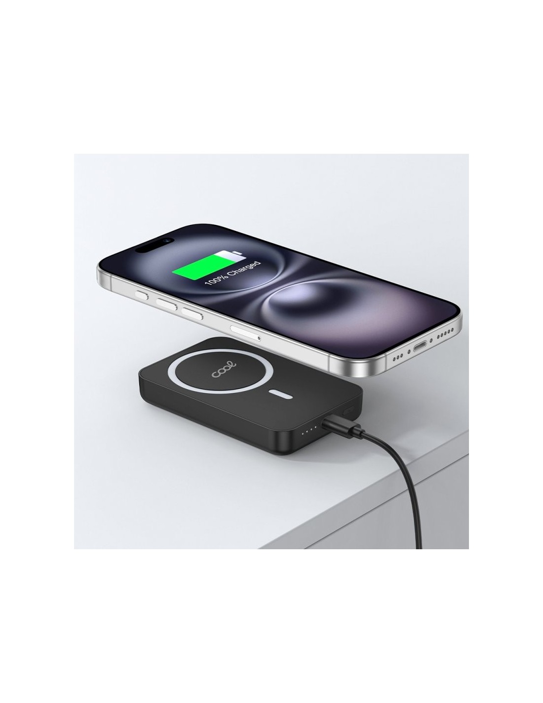 Batería universal portátil recargable de 5000 mAh ideal para cargar tu smartphone, con carga inalámbrica Qi.