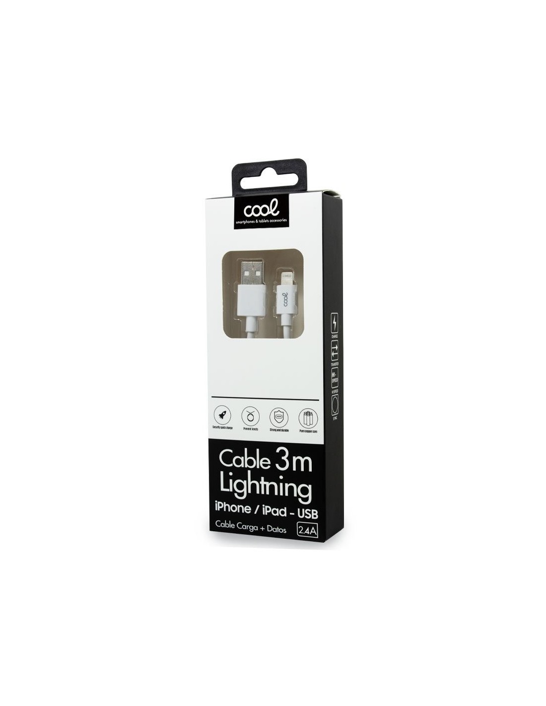 Cable Lightning compatible 3 metros COOL para iPhone / iPad.