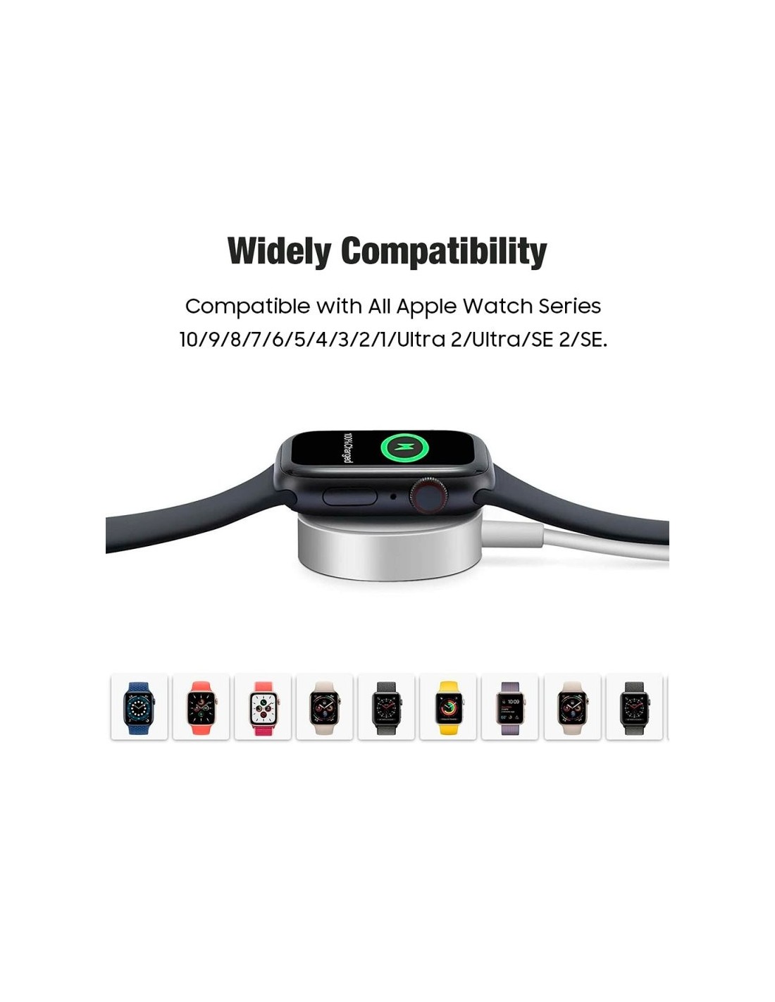 De color blanco y espectacular acabado de materiales de alta resistencia, podrás cargar tu Apple Watch, desde la serie 1 hasta la serie 10, también podrás cargar Apple Watch de la serie SE y Apple Watch de la serie Ultra.