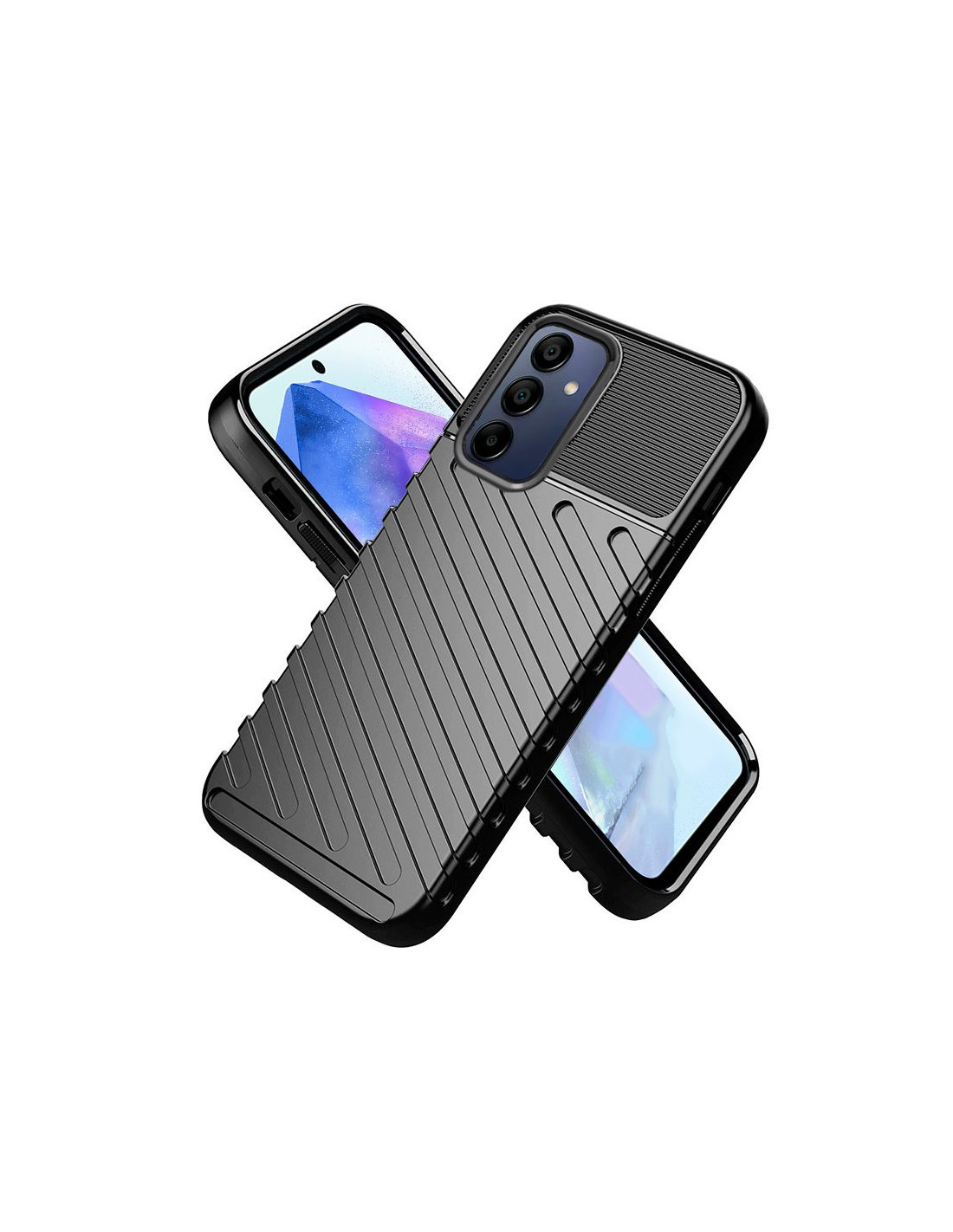 Carcasa blindada THUNDER. La estructura especial del interior distribuye la fuerza del impacto y absorbe perfectamente los impactos. Las esquinas reforzadas protegen además los bordes del dispositivo contra daños. Botoneras cómodas para pulsar cómodamente los botones de tu smartphone.