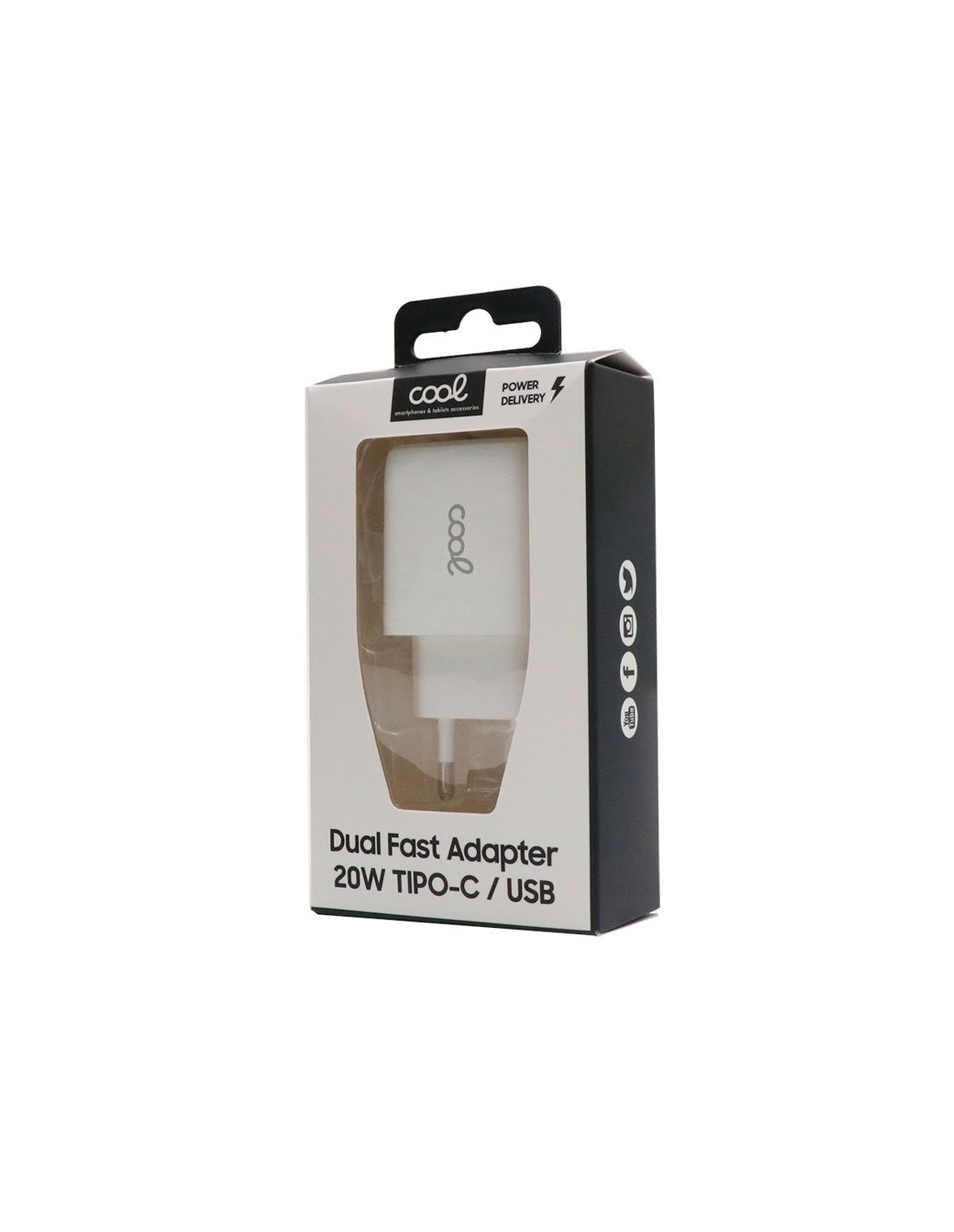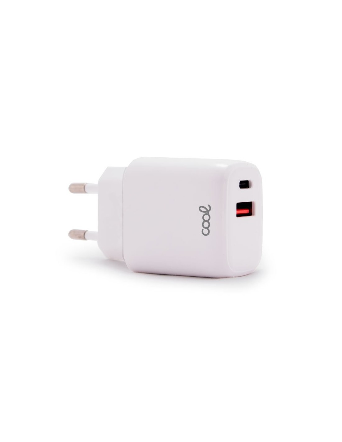 Cargador de red universal carga rápida (PD) doble toma tipo C / USB Cool (20W) blanco