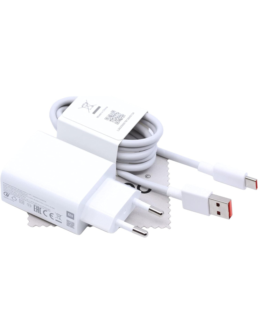 Enchufe adaptador original y cable USB a tipo C originales de Xiaomi.