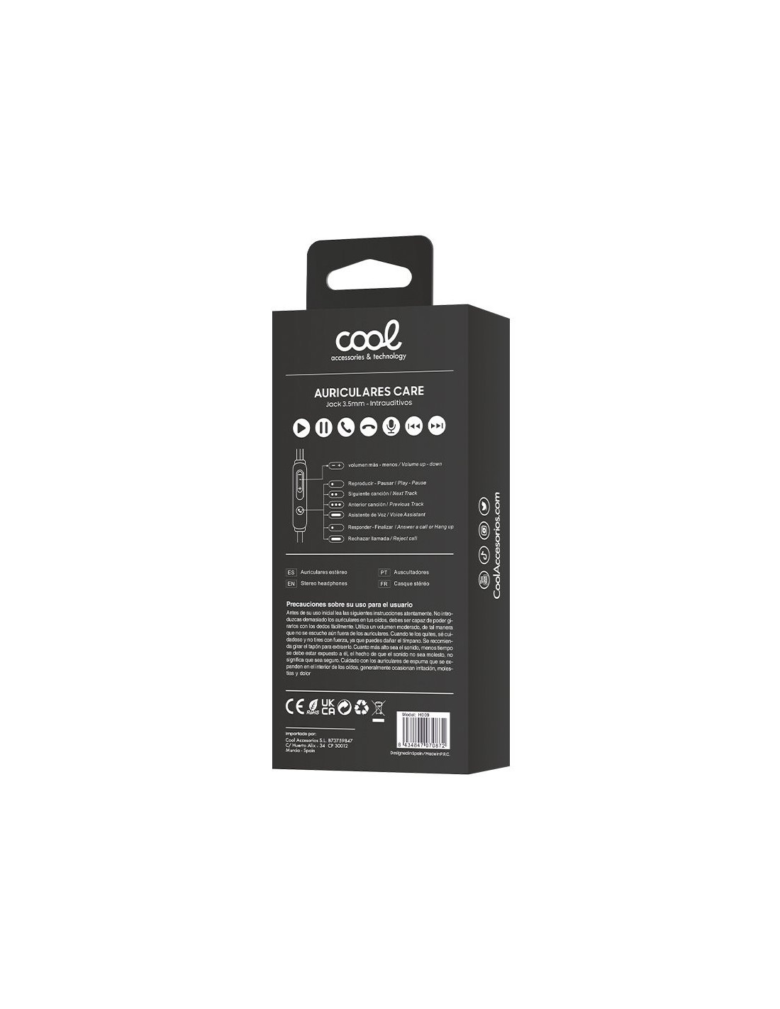 Los auriculares manos libres COOL Care constan de un diseño simple donde se destaca una apariencia elegante y un sonido perfecto. Se ajustan perfectamente produciendo un aislamiento contra el ruido externo para el disfrute de la música y las llamadas.