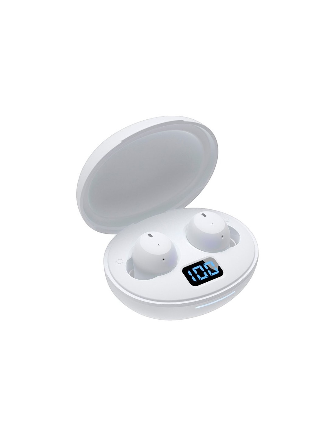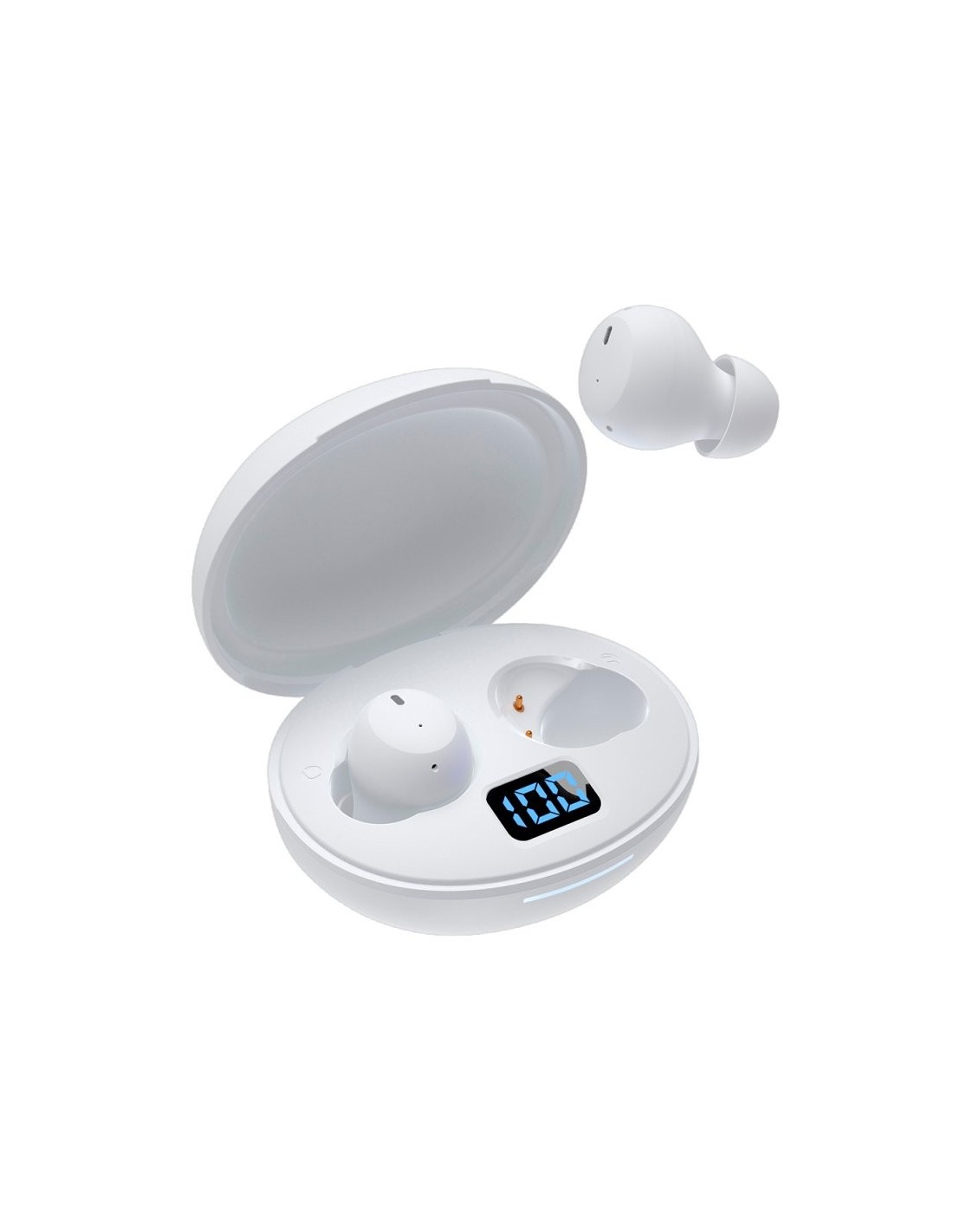 Auriculares estéreo Bluetooth para escuchar música y hablar por teléfono gracias a su conexión bluetooth. Novedoso diseño con pantalla led indicadora del nivel de batería y del estado de la carga, intengrada en la caja cargadora (powerbank).