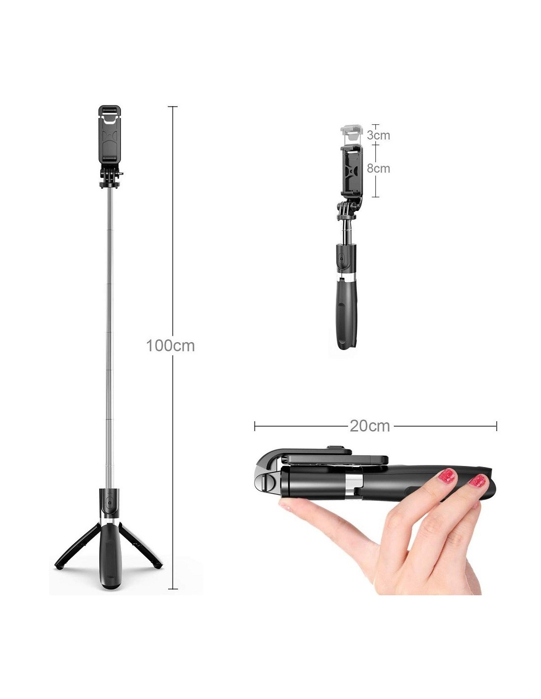 Es un accesorio esencial si quieres capturar el selfie perfecto con fondo bonito incluido o simplemente obtener un punto de vista único para tu foto. Se trata de una barra ligera y portátil, permitiéndote llevarla contigo a dondequiera que vayas.