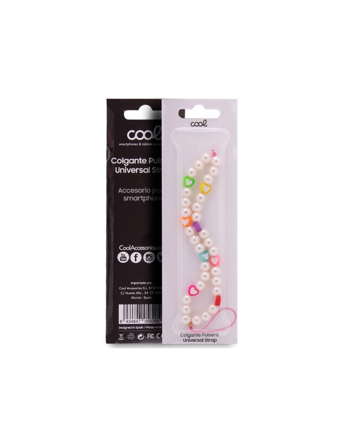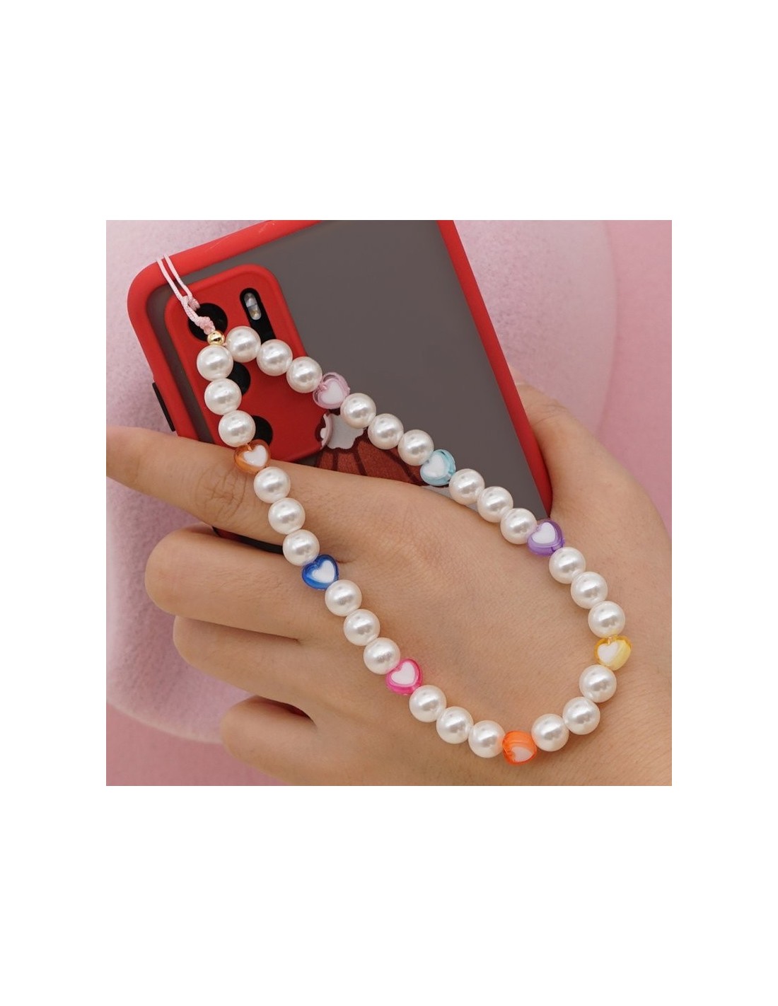 Colgante pulsera cuentas universal para smartphone diseño perlas y corazones