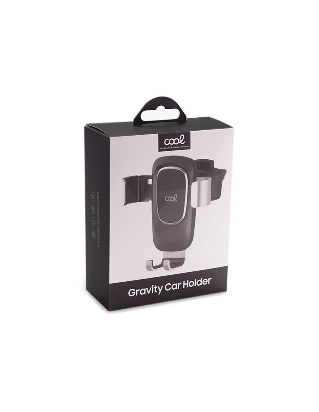 Permite al conductor introducir o extraer el smartphone con una sola mano, con un movimiento rápido y cómodo. Presentación en un blister marca COOL de diseño vanguardista.