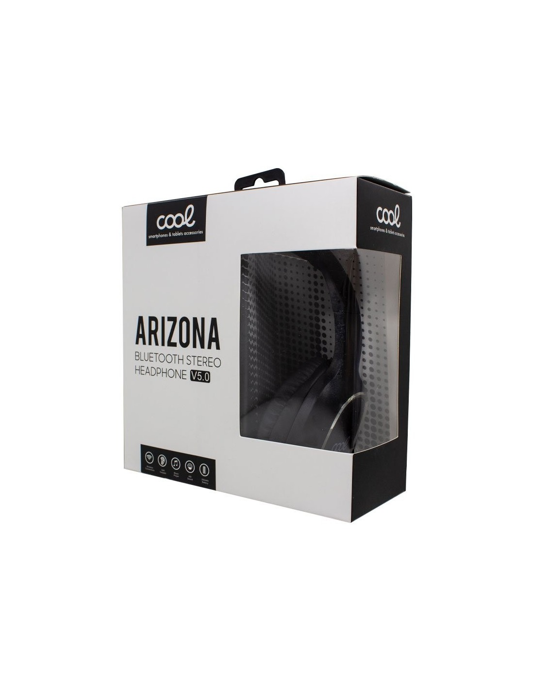 Auriculares Bluetooth Stereo COOL Arizona. Ideal para escuchar música, usar en videojuegos o ver películas. Color negro. Con almohadilla lavable para una mayor higiene.