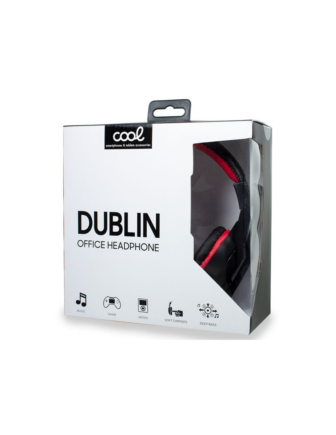 Auriculares COOL Dublin con micrófono incorporado de alta calidad, con varilla ajustable. Ideal para escuchar música, usar en videojuegos o ver películas. Color negro con detalles en color rojo. Auricular y soporte superior acolchados para una mayor comodidad.