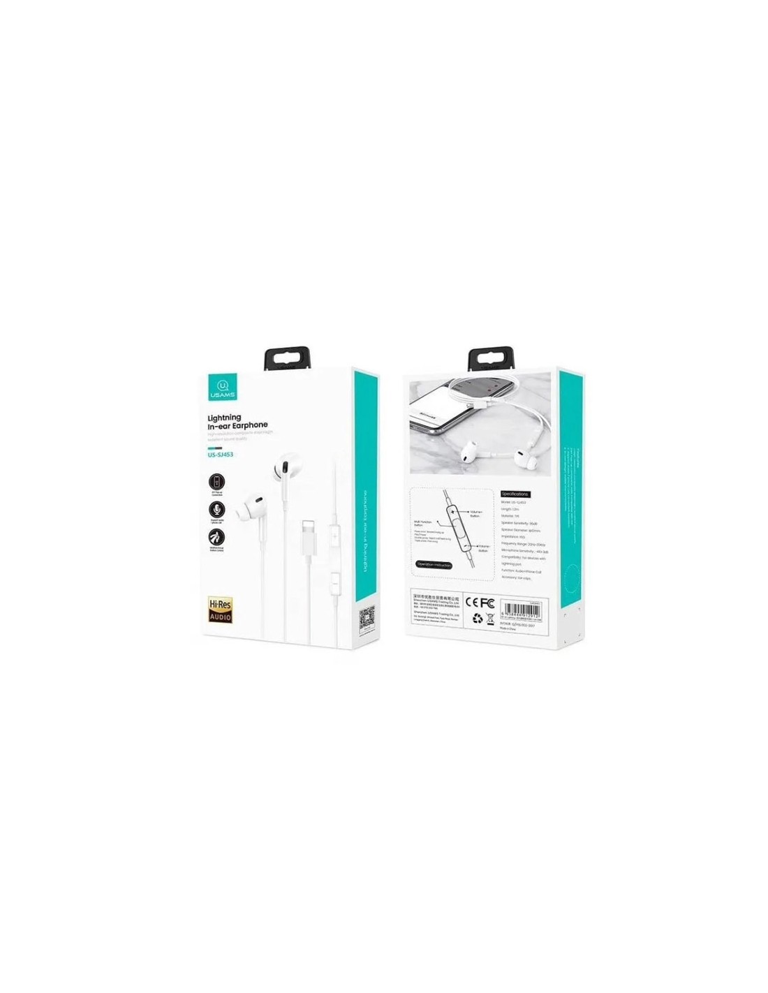 Los auriculares intrauditivos de USAMS modelo US-SJ453 son la solución ideal para escuchar música con tu iPhone. Se conectan a través de Bluetooth y se alimentan mediante el cable Lightning incorporado.