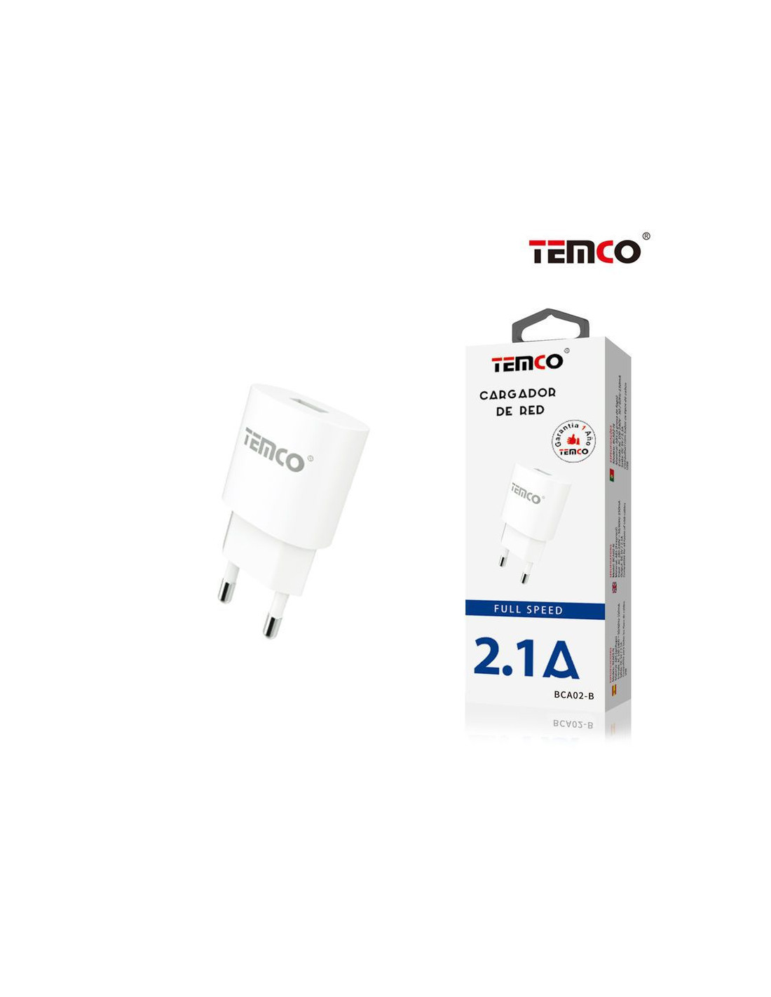 Enchufe cargador con toma USB A de 2,1 amperios.
