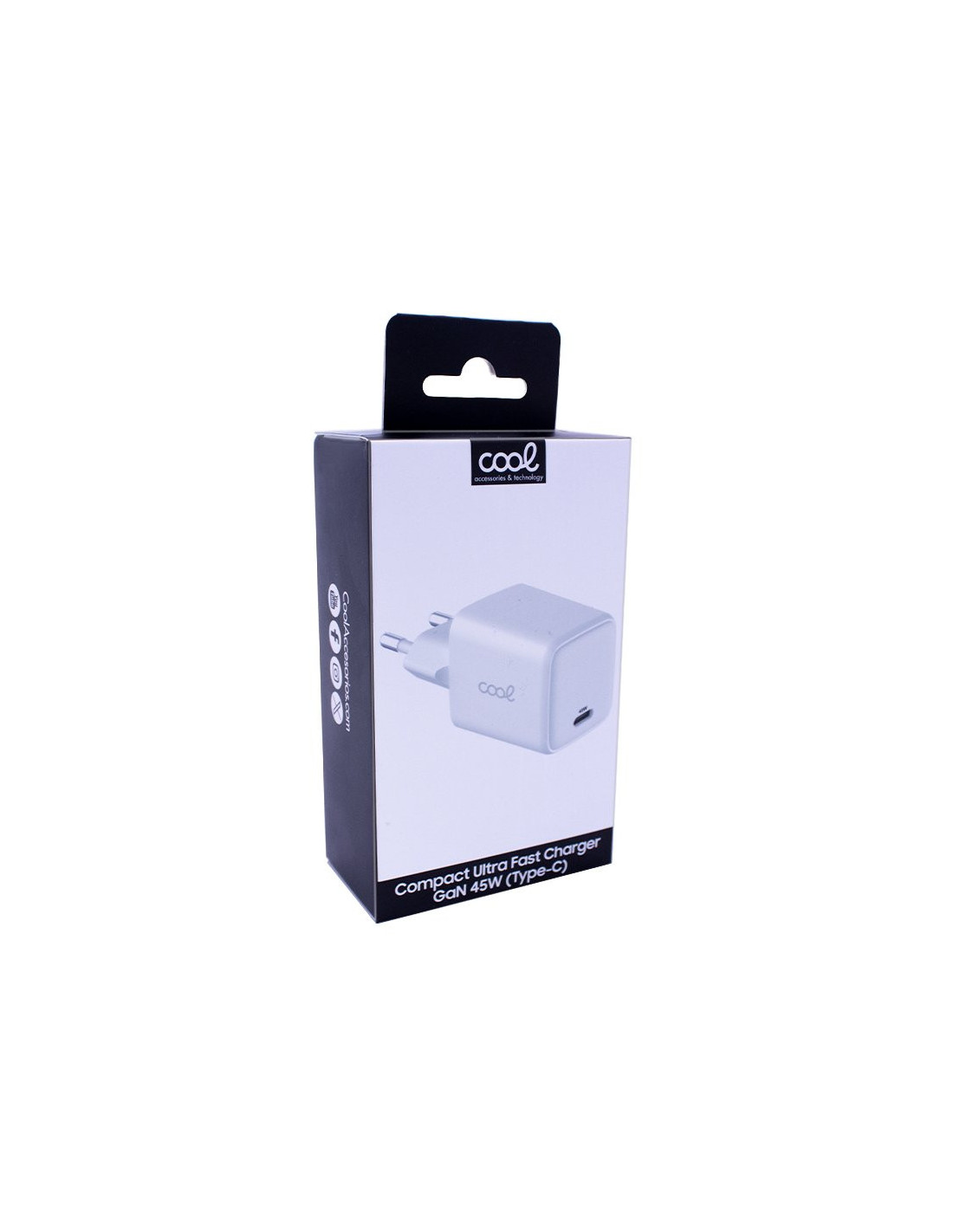 Adaptador con tecnología de carga avanzada Tipo-C PD y una potencia de 45W. Con Tecnología GaN: menos recalentamiento del cargador y componentes más compactos para un menor peso y tamaño del cargador.