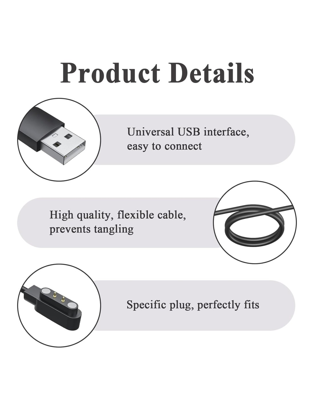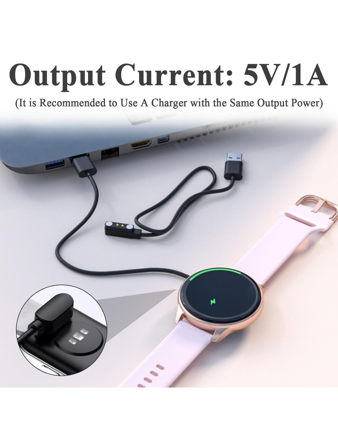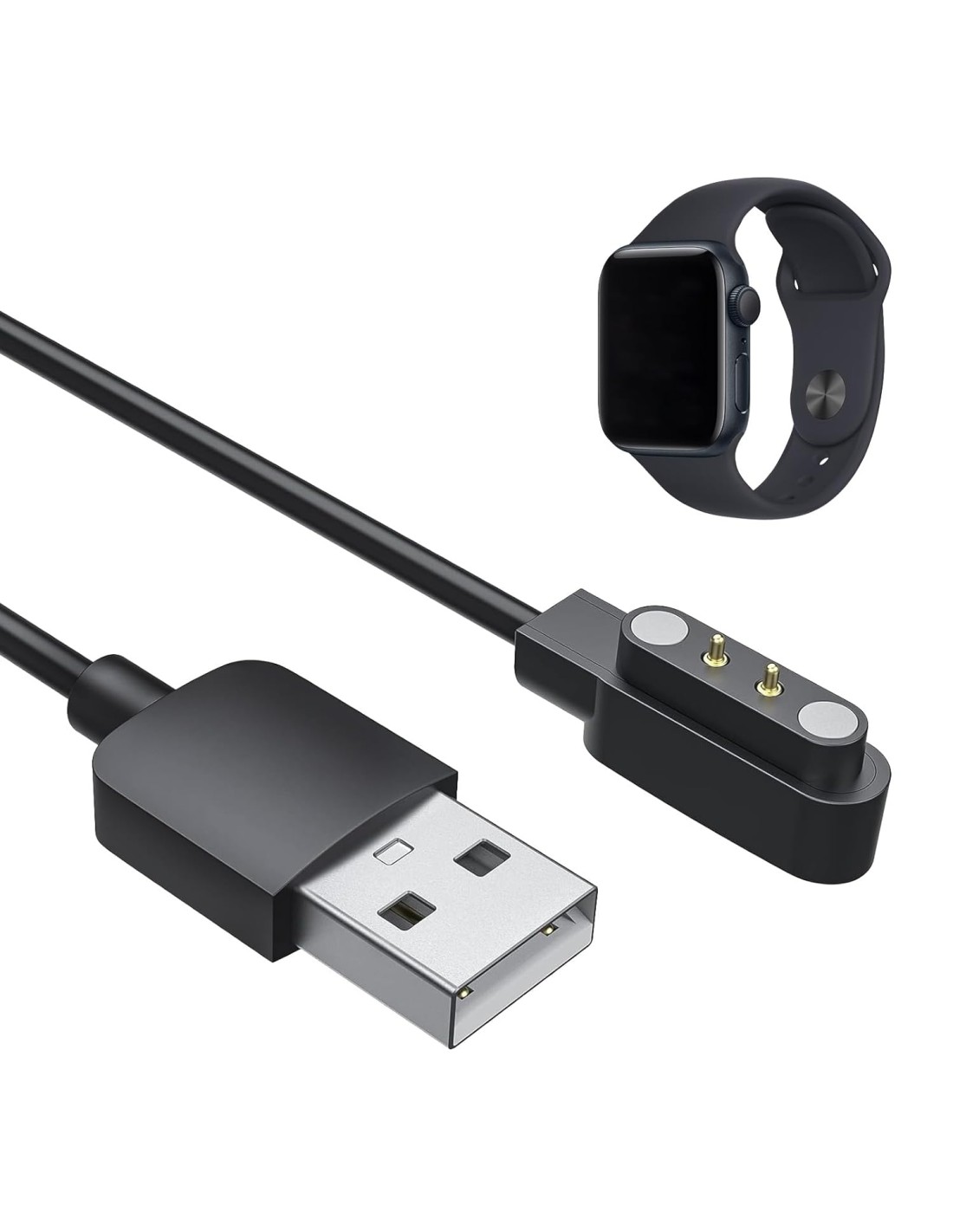 Cable compatible para carga magnética de smartwatch universal. Ancho entre pines de 4 mm.