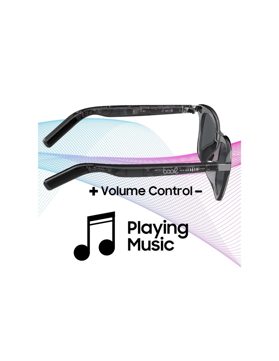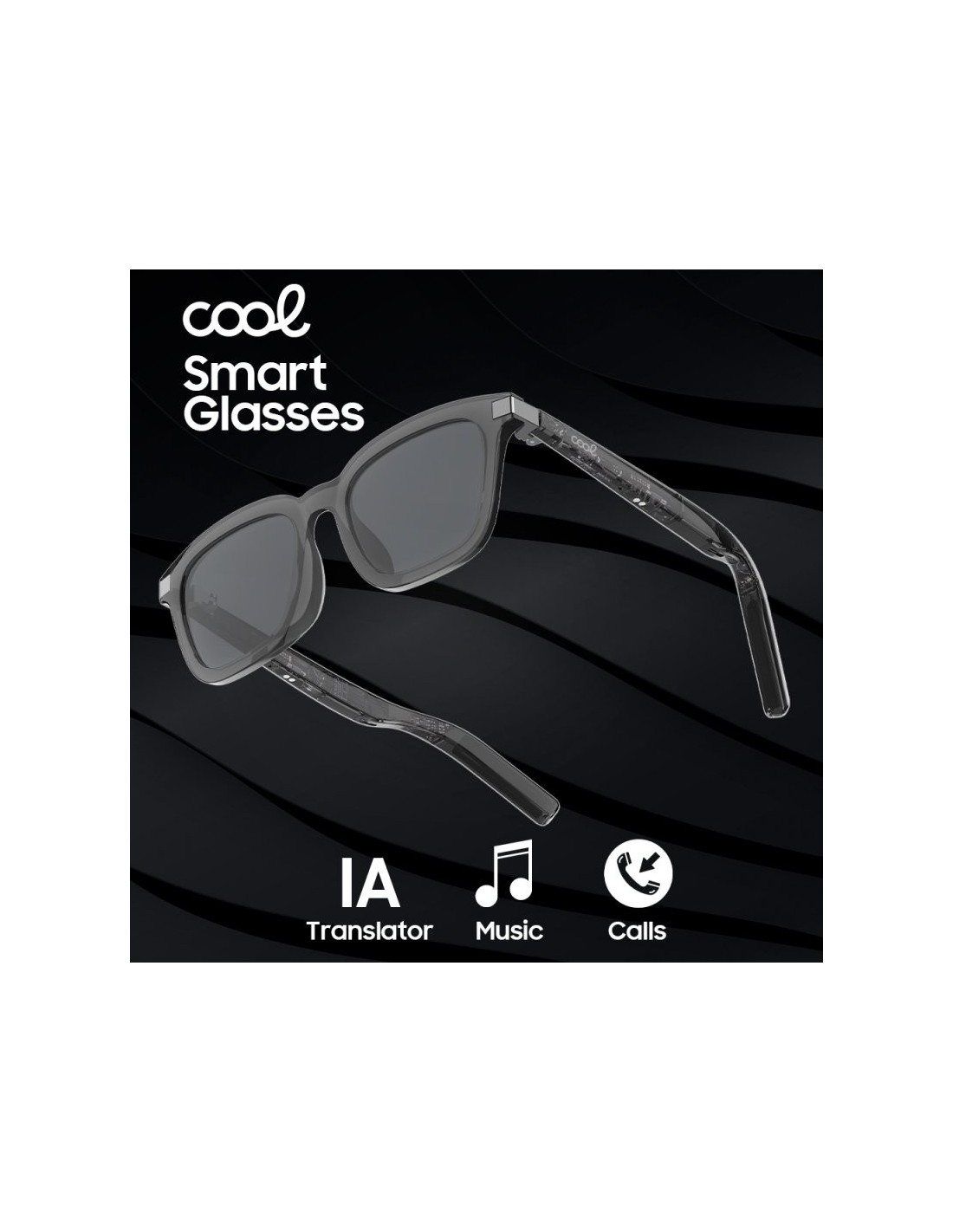Disfruta de una experiencia sensorial única con las nuevas Smart Glasses COOL IA. Con estas gafas inteligentes podrás escuchar tu música favorita a través de bluetooth, seleccionando cómodamente el volumen a través de la patilla de la gafa.