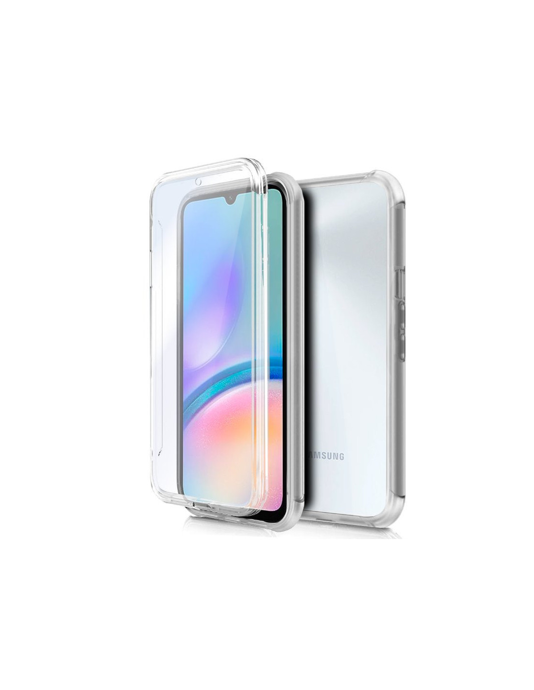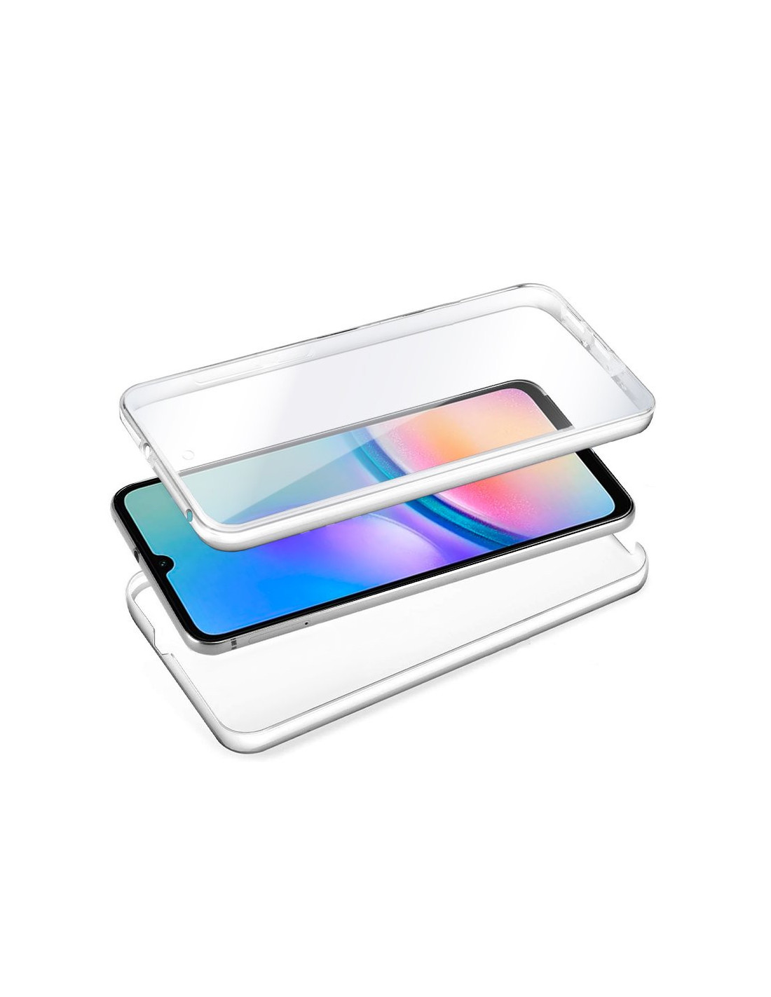 Funda resistente para móvil, de tipo transparente, silicona semirígida 360º, cubre parte frontal y trasera del smartphone.