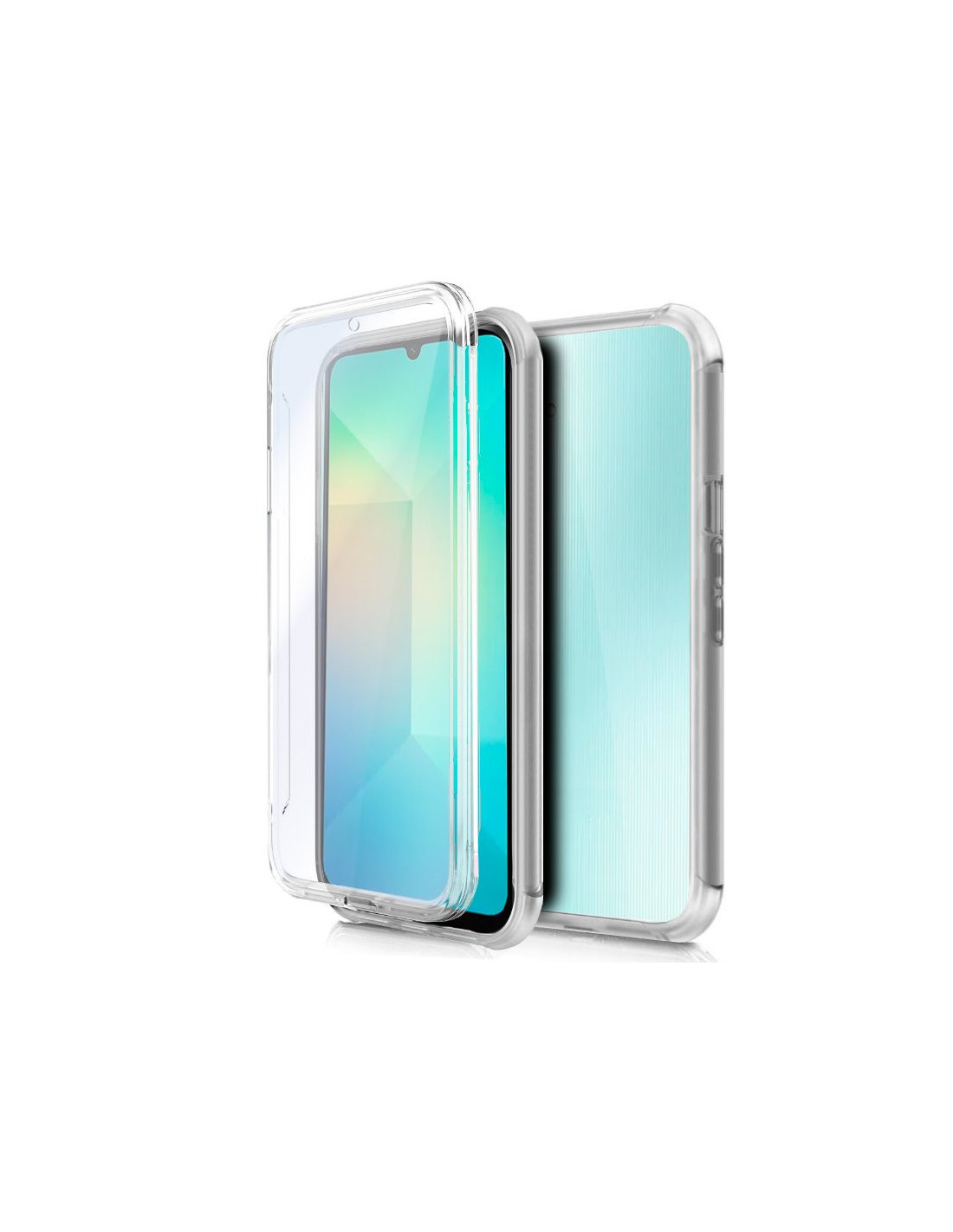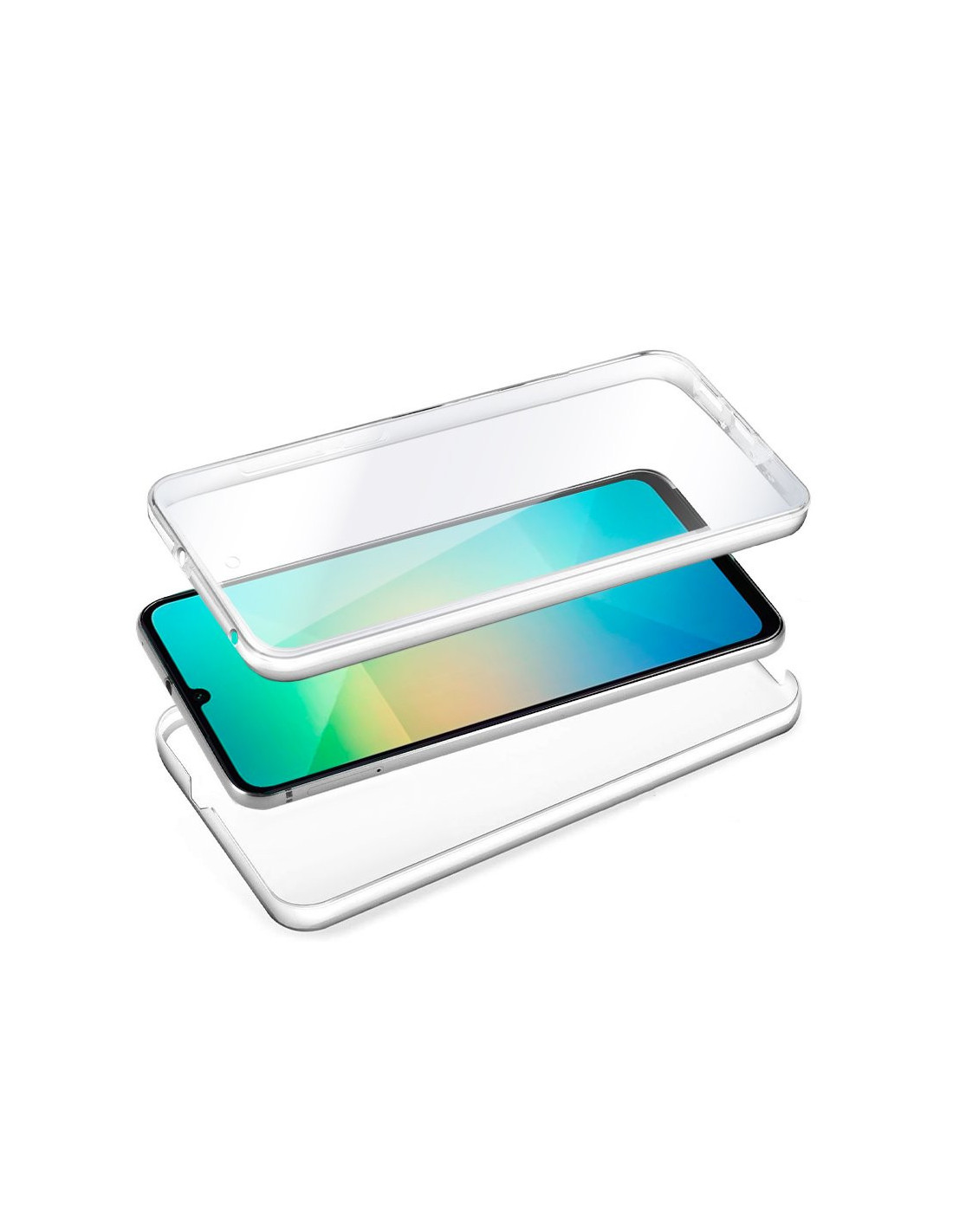 Funda resistente para móvil, de tipo transparente, silicona semirígida 360º, cubre parte frontal y trasera del smartphone.