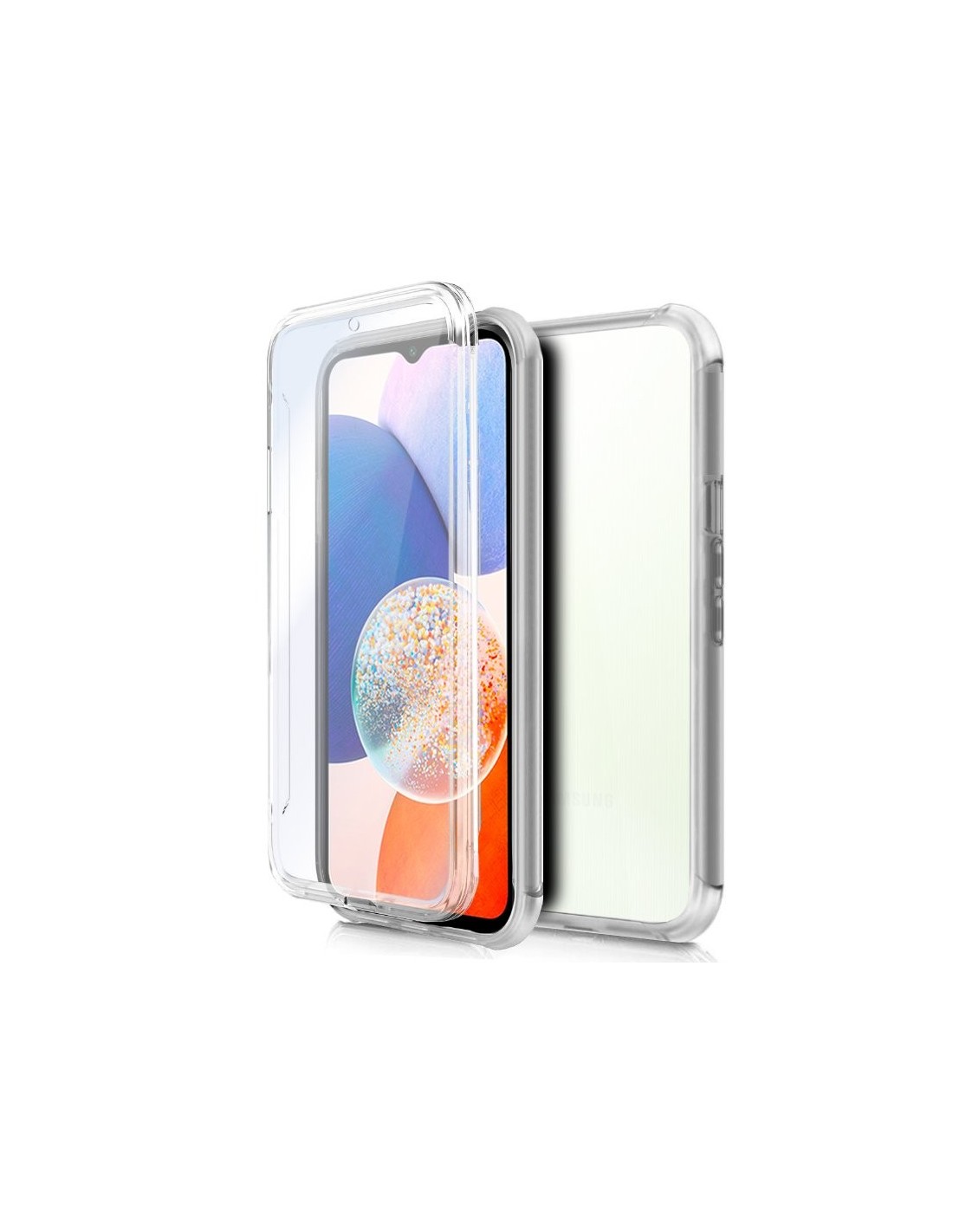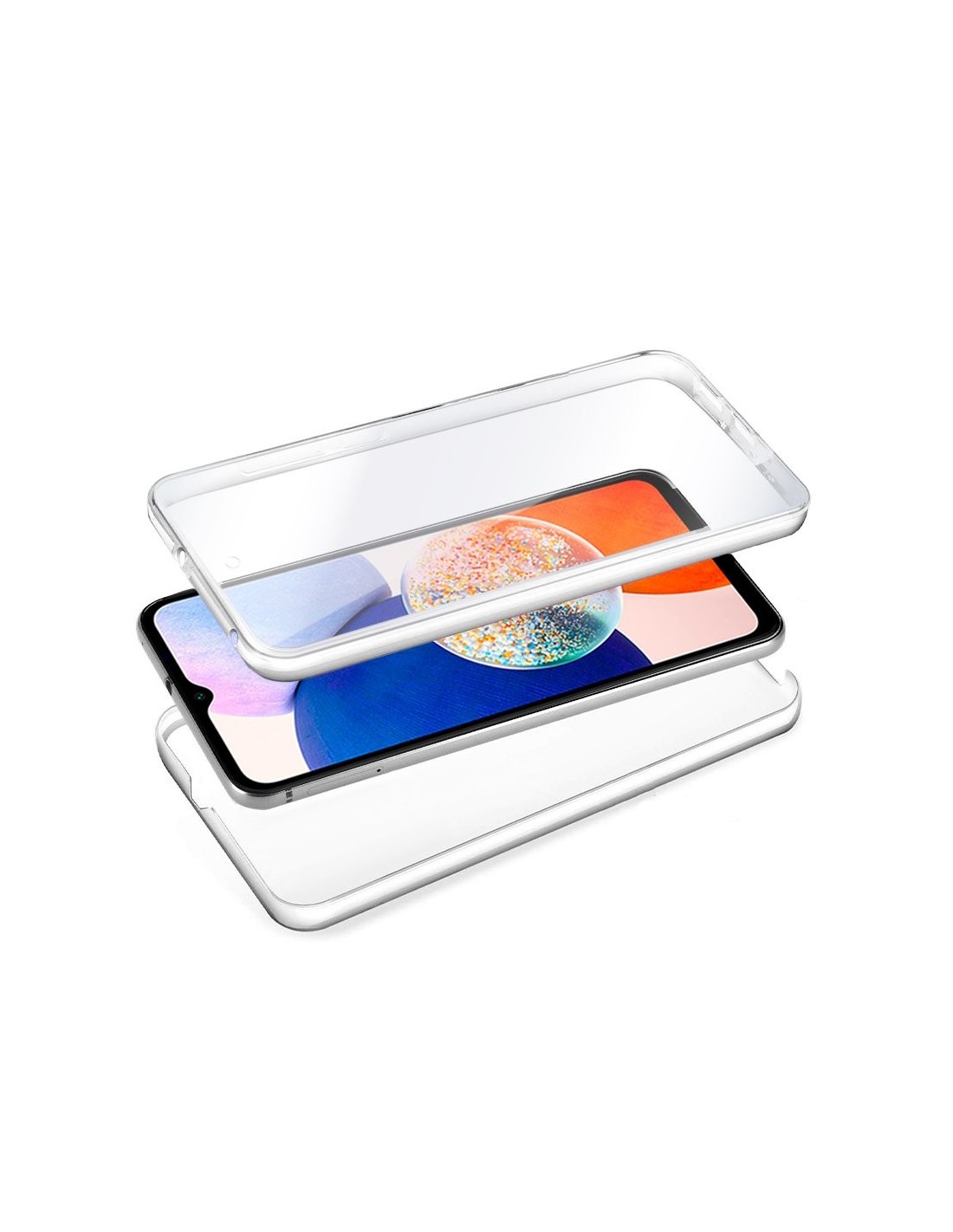 Funda resistente para móvil, de tipo transparente, silicona semirígida 360º, cubre parte frontal y trasera del smartphone.