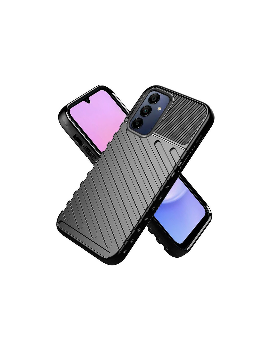Carcasa blindada THUNDER. La estructura especial del interior distribuye la fuerza del impacto y absorbe perfectamente los impactos. Las esquinas reforzadas protegen además los bordes del dispositivo contra daños. Botoneras cómodas para pulsar cómodamente los botones de tu smartphone.