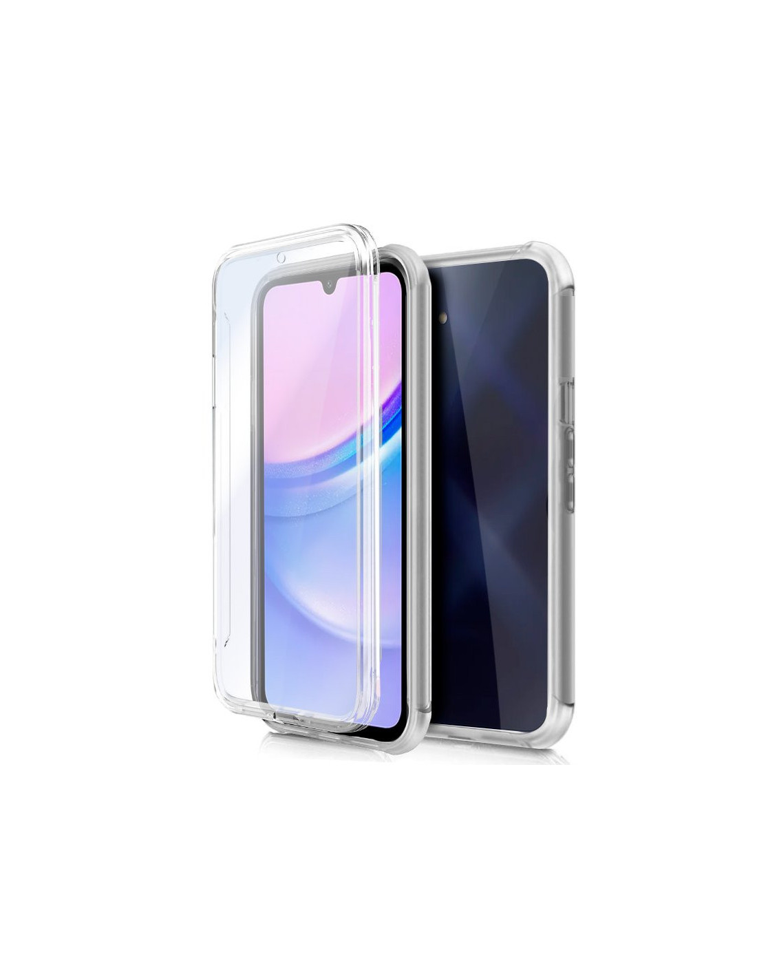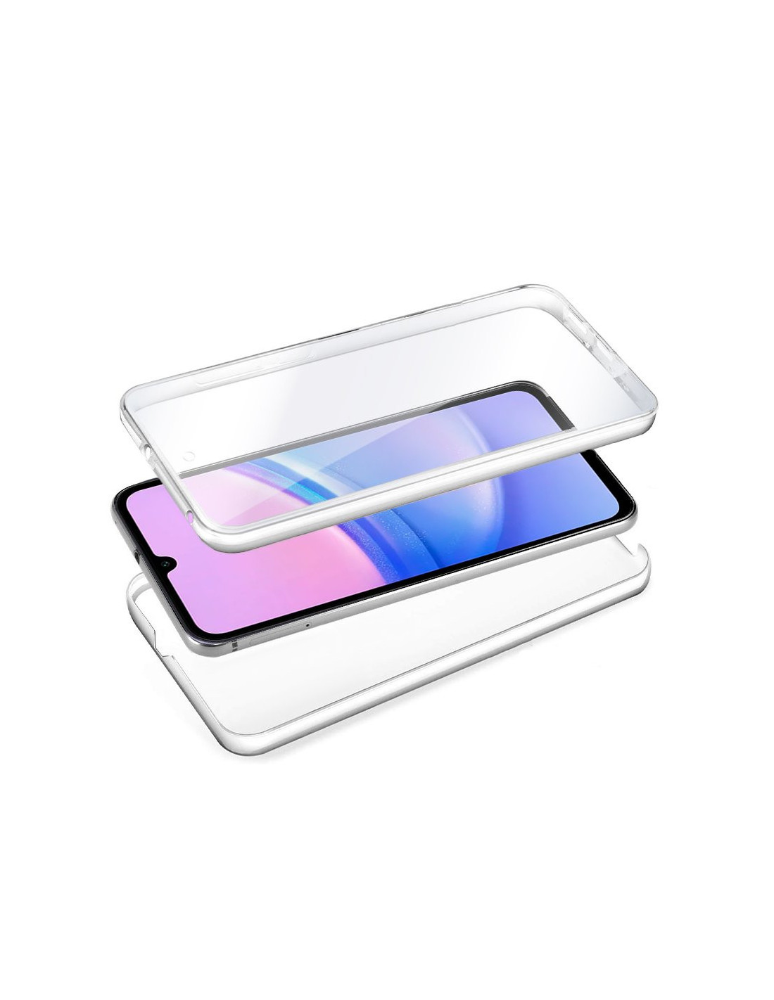 Funda resistente para móvil, de tipo transparente, silicona semirígida 360º, cubre parte frontal y trasera del smartphone.