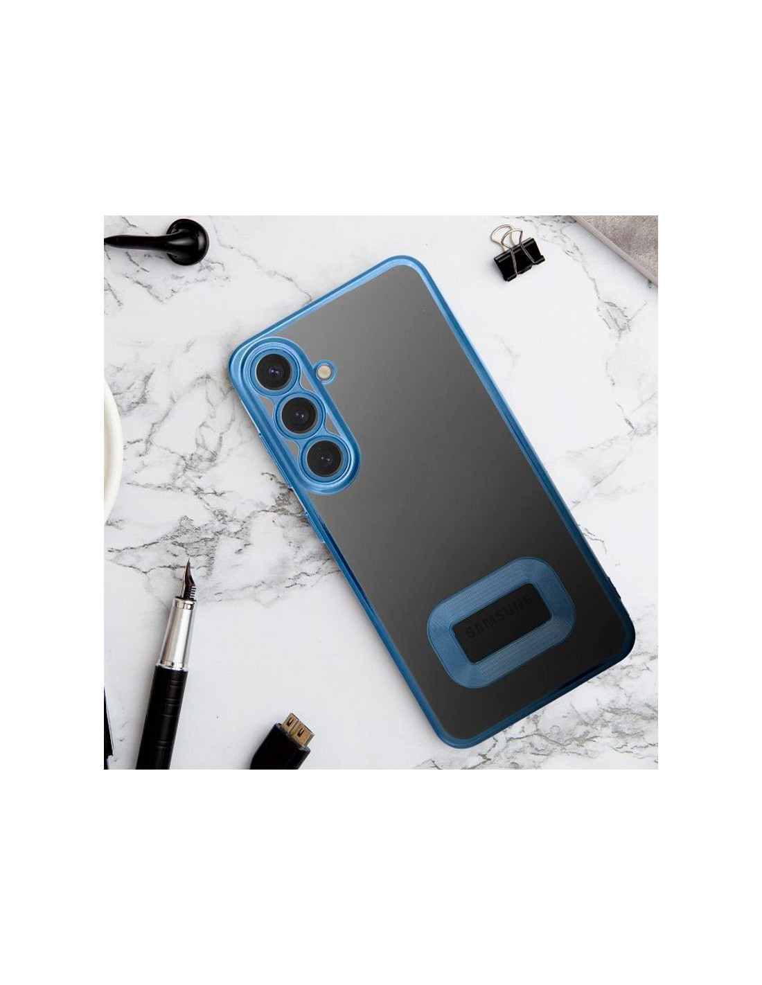 Carcasa TPU transparente Samsung A165 Galaxy A16 / A16 5G borde metalizado azul