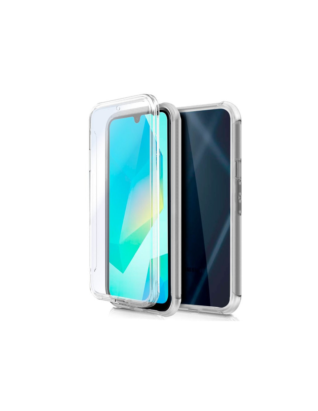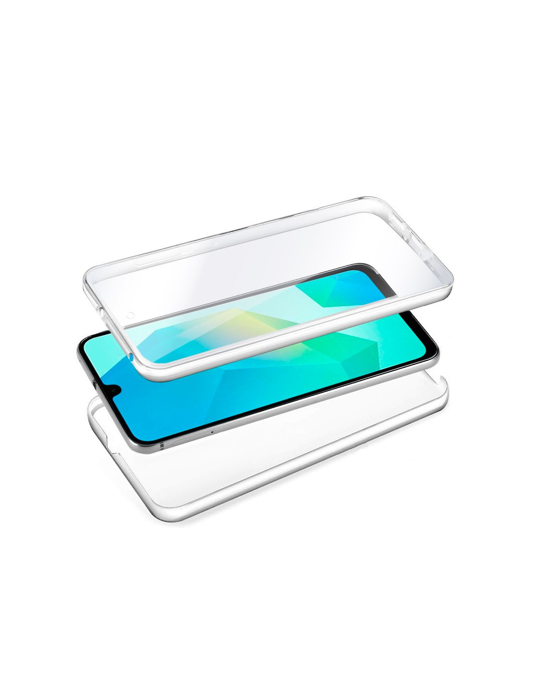 Funda resistente para móvil, de tipo transparente, silicona semirígida 360º, cubre parte frontal y trasera del smartphone.
