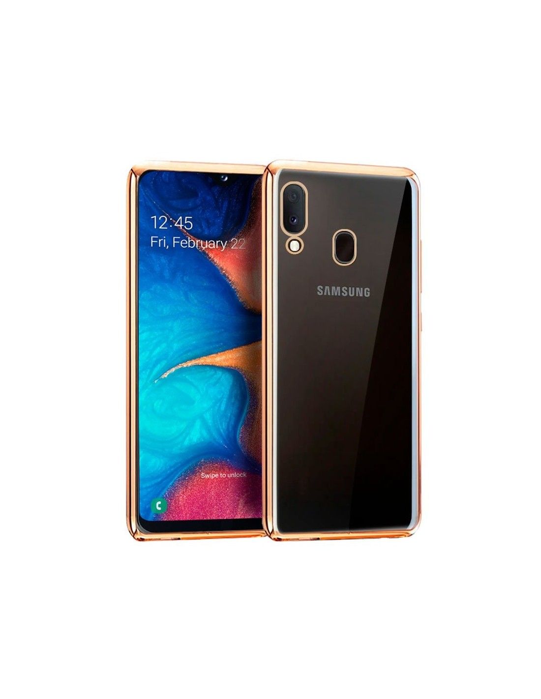 Carcasa TPU transparente Samsung A202 Galaxy A20e borde metalizado dorado