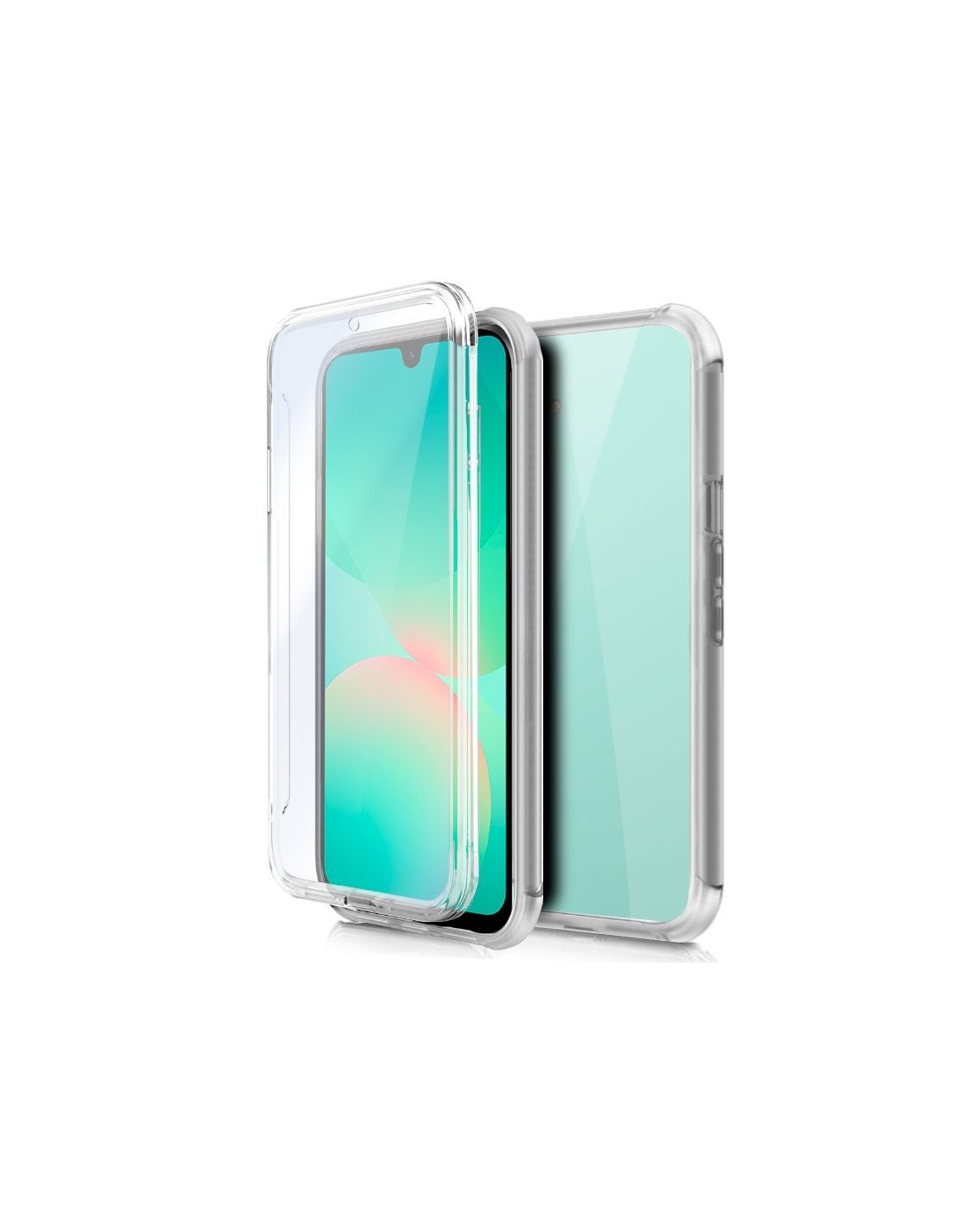 Funda resistente para móvil, de tipo transparente, silicona semirígida 360º, cubre parte frontal y trasera del smartphone.