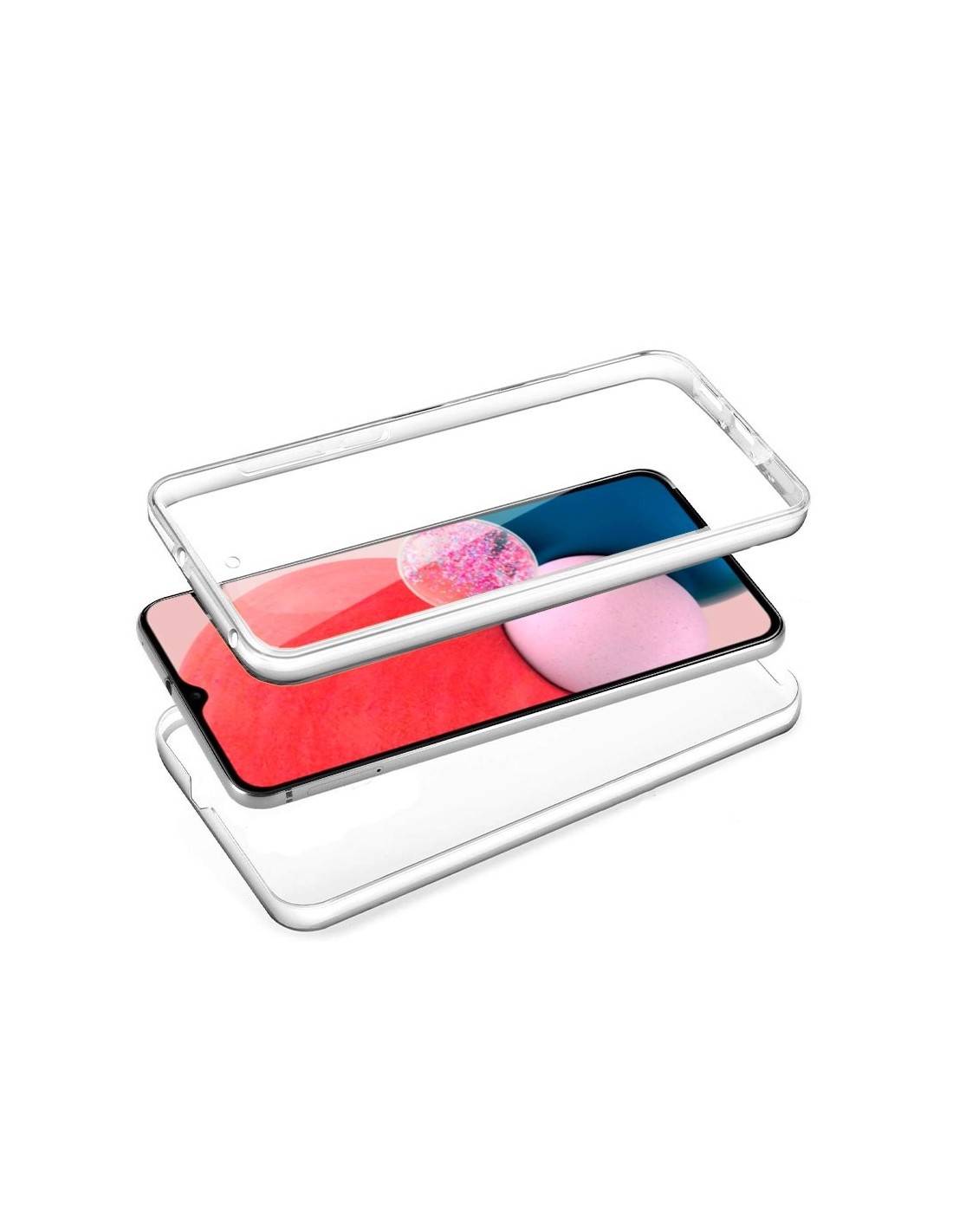 Funda resistente para móvil, de tipo transparente, silicona semirígida 360º, cubre parte frontal y trasera del smartphone.